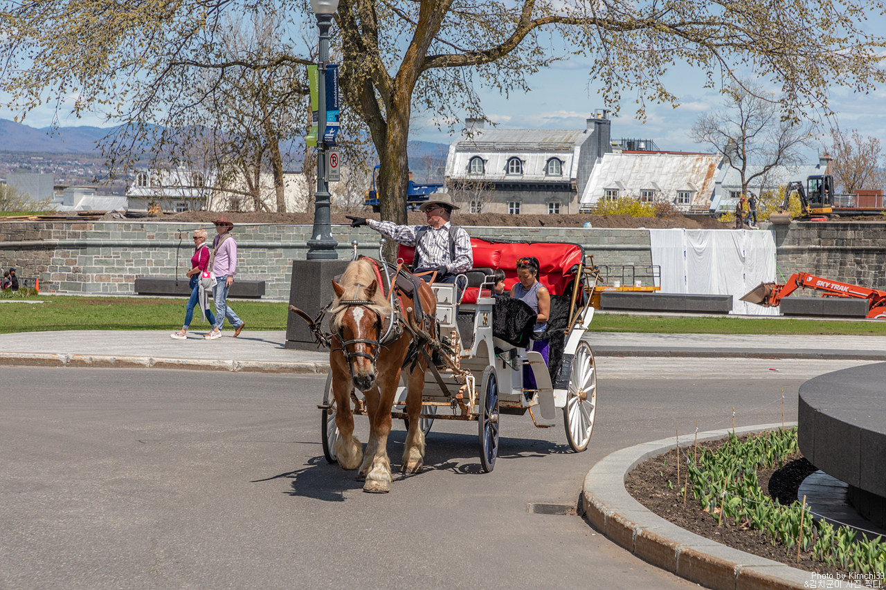 그러는 사이 지나가는 또 다른 관광용 마차. 퀘벡시티에 있는 동안 타보지는 않았지만, 커플 여행이라면 나름 타보는 것도 괜찮지 않을까 싶었다.