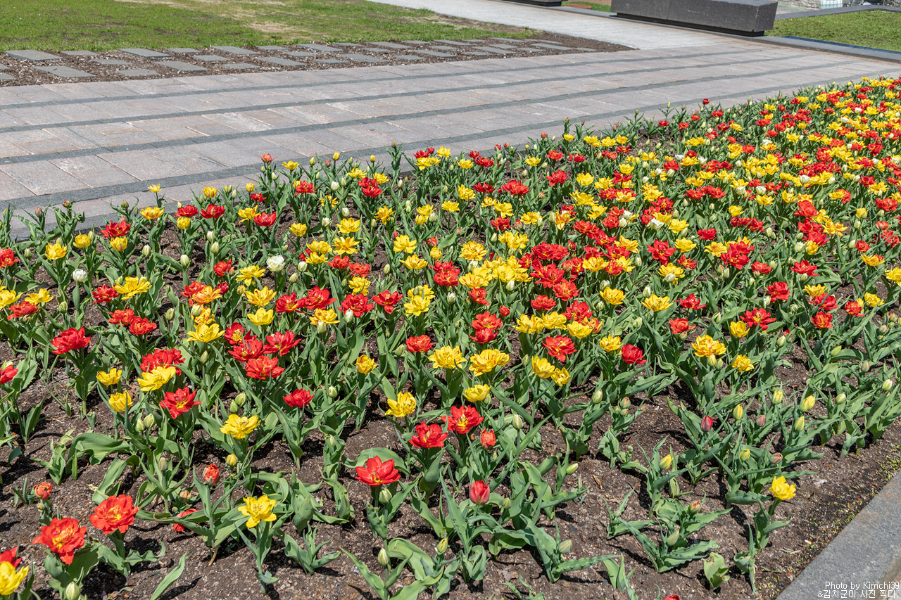 그리고, 예쁜 꽃들을 그냥 놓치고 지나가기에는 아쉬워서 꽃과 함께 분수, 그리고 주의사당을 한 프레임에 담아보았다.