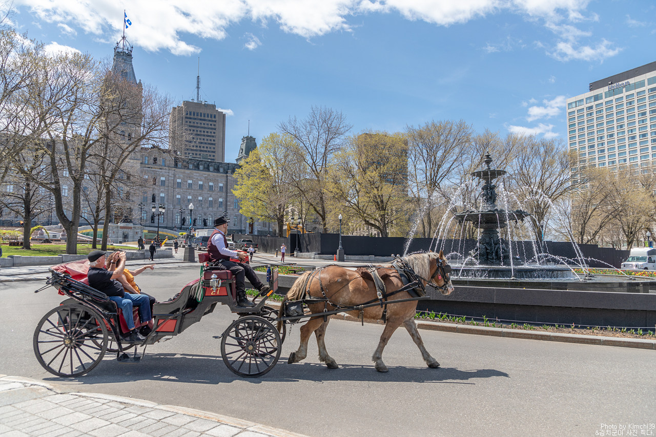 퀘벡시티에서는 이런 마차도 흔하게 볼 수 있는데, 옛 느낌이 나는 올드타운에 마차들은 생각보다 잘 어울린다. 당연하겠지만, 드라마 도깨비가 아니더라도 주의사당과 분수는 유명한 관광지다 보니 마차의 루트에 거의 다 포함되는 듯했다.