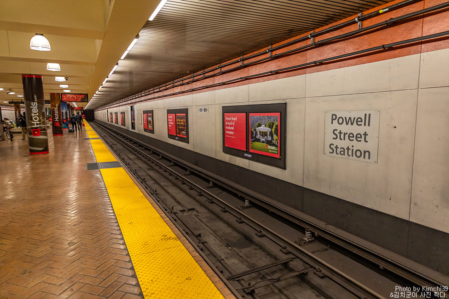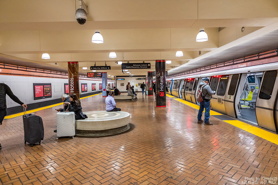 그렇게 최종 목적지인 파월 스트리트 역(Powell Street Station)에 도착했다. 파월역에는 엘리베이터가 설치되어 있어서, 무거운 캐리어를 끌고 계단을 올라가지 않아도 손쉽게 마켓스트리트 쪽으로 나갈 수 있어 편리하다. 바트 역은 엘리베이터가 없는 경우가 더 많은데, 호텔들이 많이 모여있는 파월 스테이션은 그래도 엘리베이터가 있다.