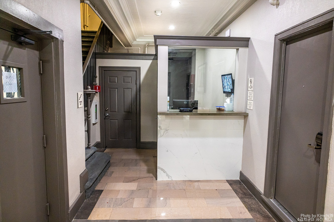 요즘 샌프란시스코 치안이 안좋다보니, 입구는 벨을 눌러야만 들어갈 수 있게 되어있었다. 아주 작은 로비가 있었고, 직원이 나와서 체크인을 해 주었다. 오후 3시부터 체크인이었지만, 정오 조금 넘어 도착했던 관계로 혹시 일찍 체크인이 가능하냐고 물어보니 웃으면 흔쾌히 가능하다고 했다. 추가금으로 $20 만 더 낸다면 말이다. $10 으로 안되겠냐고 물으니, $15 만 더내면 해주겠다고 했다. 이거 아무리봐도 체크인 하는 직원이 객실이 비어있는데, 용돈삼으려는 것 같았지만.. 팁이다 치고 $15를 줬다. 어차피 3시간이나 일찍 체크인을 시켜주긴 했으니까.