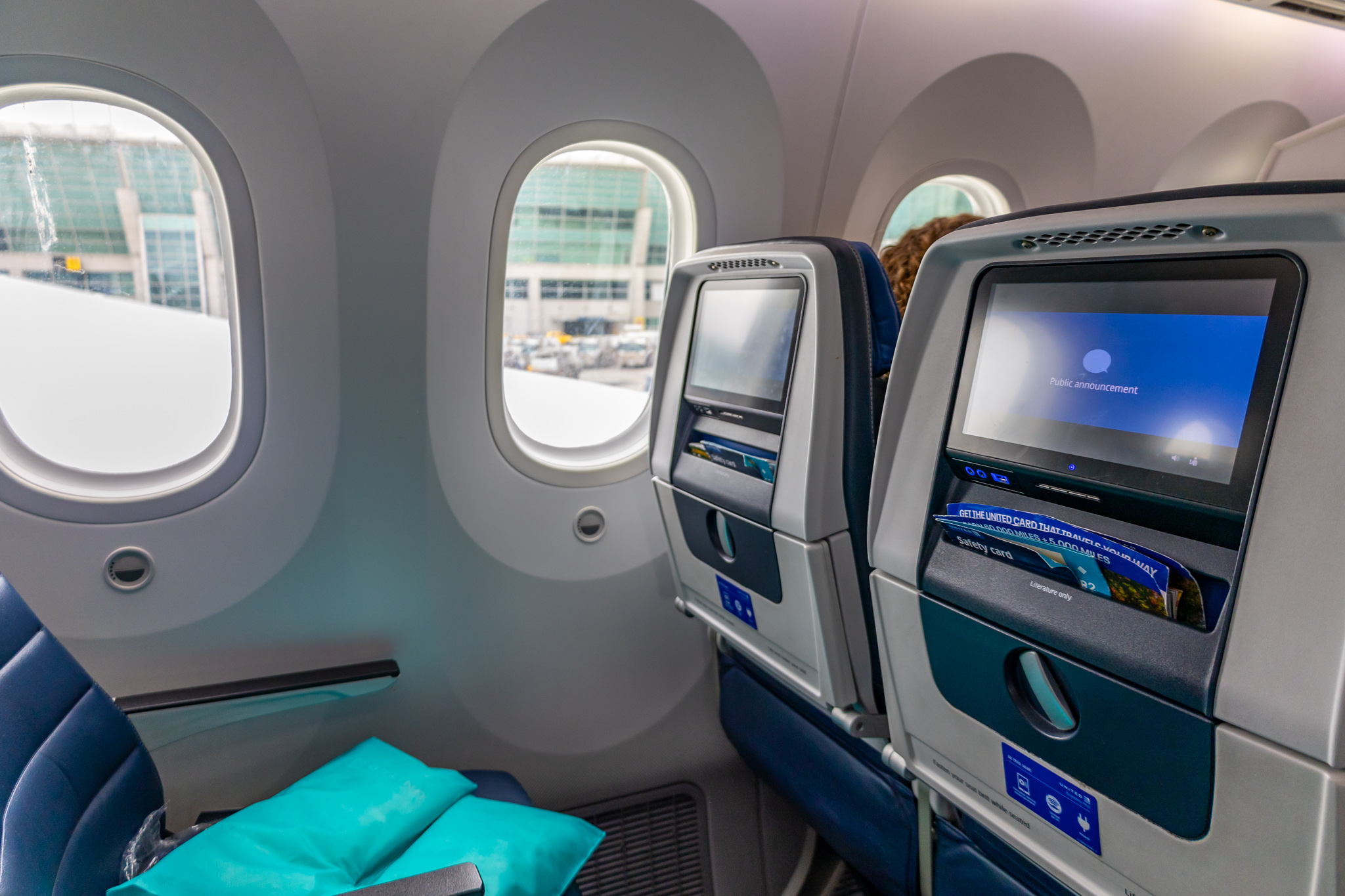 유나이티드항공의 이코노미 플러스의 좌석 피치는 34인치(86.3cm)다. 기본 이코노미 좌석은 31인치(78.4cm)이므로, 이코노미 플러스가 일반 이코노미보다 8cm 정도 더 피치가 길다. 8cm가 별거 아닌거 같지만, 장거리 비행에서는 생각보다 큰 차이가 나는 부분이다.