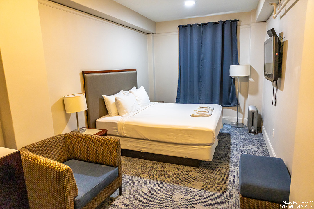 나중에 나오면서 보니, 내가 묵었던 객실이 층에서 가장 컸다. 기본룸을 예약했는데, 왜이렇게 큰 객실을 받았지? 싶었는데.. 일찍 체크인하면서 $15를 받는 김에, 직원이 업그레이드도 시켜준 것 같았다. 참, 1성급 호텔에서 별 혜택(?)을 다 받아본다.