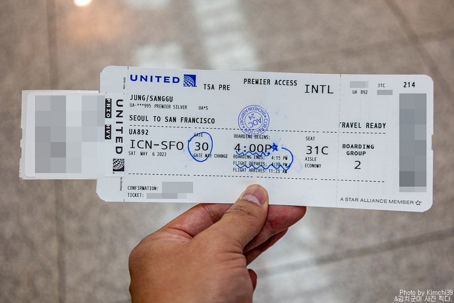 출장 및 여행 겸 해서 미국으로 떠나는 날. 인천에서 유나이티드 항공을 타고, 샌프란시스코까지 가는 일정이었다. 거의 1달에 가까운 출장 겸 여행이기는 했지만, 언제나 그렇듯이 짐은 캐리어 하나로 충분했다. 평소라면 스타얼라이언스 골드 등급을 이용하겠지만, 이번에는 이코노미 플러스 좌석을 지정하기 위해서 유나이티드 실버 등급을 이용했다. 유나이티드 실버 등급은 체크인 시에 이코노미 플러스 좌석의 지정이 가능하다.