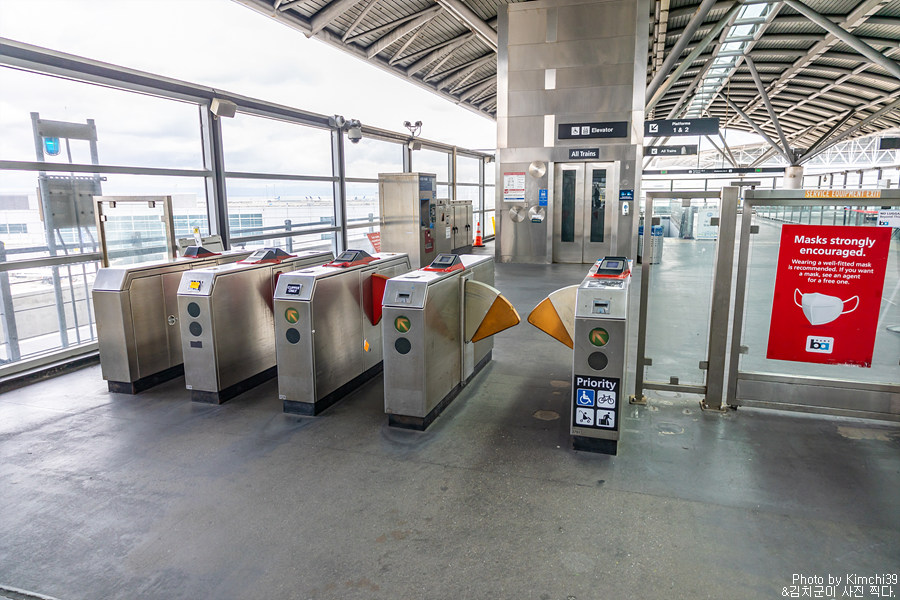 그렇게 최종 목적지인 파월 스트리트 역(Powell Street Station)에 도착했다. 파월역에는 엘리베이터가 설치되어 있어서, 무거운 캐리어를 끌고 계단을 올라가지 않아도 손쉽게 마켓스트리트 쪽으로 나갈 수 있어 편리하다. 바트 역은 엘리베이터가 없는 경우가 더 많은데, 호텔들이 많이 모여있는 파월 스테이션은 그래도 엘리베이터가 있다.