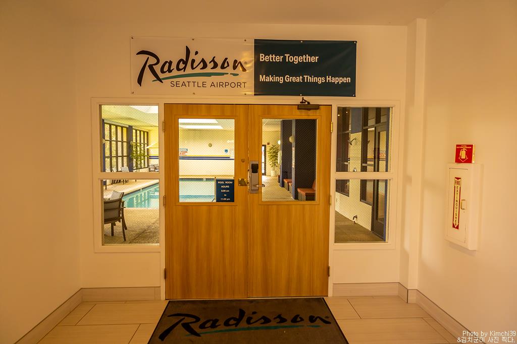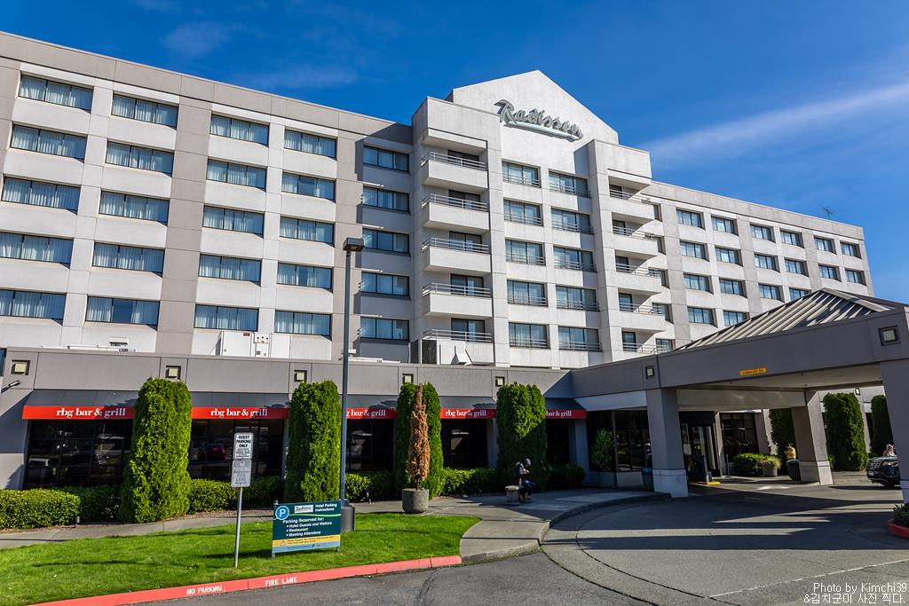 그렇게 도착한 래디슨 호텔 시애틀 공항. 라이트레일에서 도보로 5분정도 떨어져 있어서, 공항에서 시내로 손쉽게 이동할 수 있는 호텔 중 하나여서 예약을 했다. 사실 슈어스테이(SureStay), 힐튼(Hilto), 스카이브릿지(Skybrdige) 등의 호텔이 라이트레일 바로 건너편이어서 고려를 했었지만, 주말이어서 그런지 우리가 투숙하는 날에는 가격이 너무 높았다. 공항 숙소인데 30만원을 넘다니.. 참고로, 래디슨 호텔의 경우 예약했던 날에는 20만원 초반이었다.
