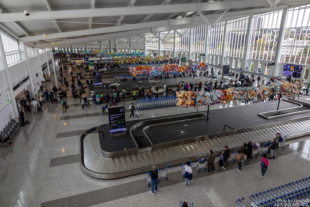 도착하자마자 입국심사를 하는 곳으로 향했다. 참고로 시애틀 입국심사는 다른 공항과 다른점이 있는데, 바로 입국심사 전에 짐을 먼저 찾는다는 점이다. 시애틀은 입국심사가 빡빡하기로 유명한데다가, 이 수하물 수취가 앞에 있다보니 입국심사가 어마어마하게 긴 것으로도 악명높다. 다행히 우리가 도착한 날에는 생각보다 많이 늘어지지는 않았지만, 시애틀 국제공항에서 환승을 하는 경우에는 최소 4시간 이상을 잡으라고 할 정도로 유명하다.