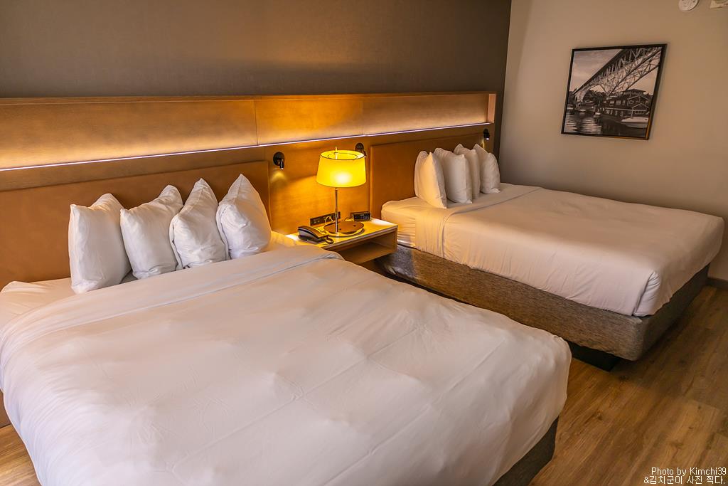 퀸침대 2개가 있는 객실은 아이2명을 동반한 가족여행에 적합했다. 이제는 아이들이 초등학생이 되다보니, 더블사이즈 침대에서 둘이 자기에는 뭔가 좁게 느껴져서 가능하면 퀸사이즈 침대 2개가 있는 객실을 선호하게 된다. 유럽이나 다른 나라라면 어려운 일이지만, 캐나다나 미국은 도심이 아닌 이상 퀸침대 2개가 상당히 흔하니까.