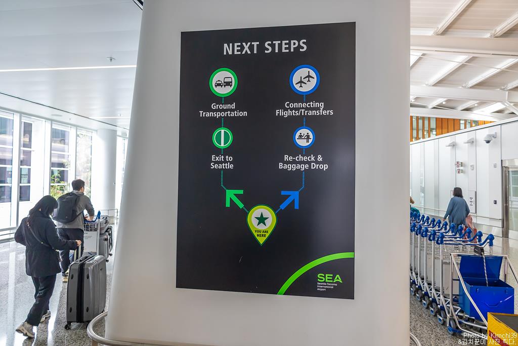 입국심사를 한 후에는 바로 시애틀로 나가거나, 아니면 짐을 연결하는 곳에서 보낸 뒤 환승 비행기를 타야 한다. 당연히 우리는 시애틀로!