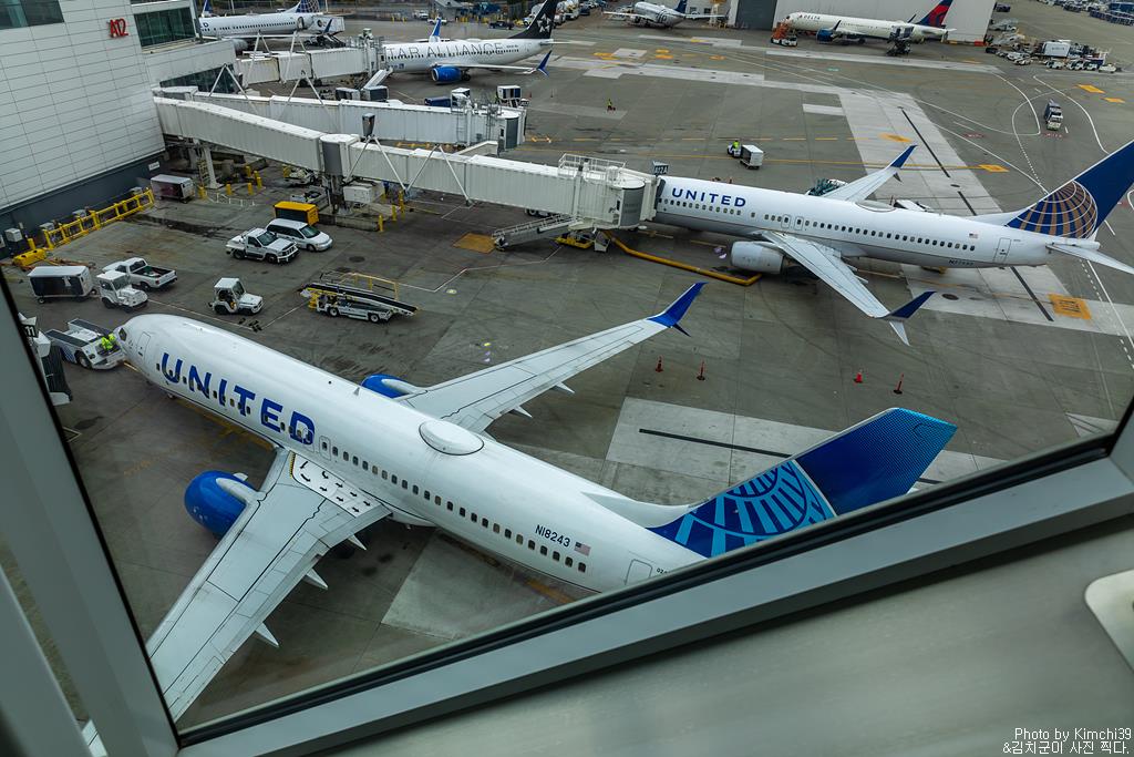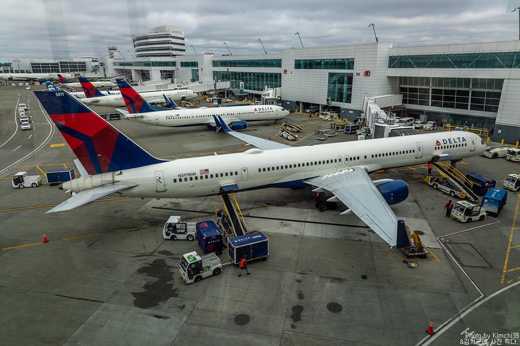 입국심사를 하러 걸어가는 길에 본 유나이티드항공과 델타항공 비행기. 참고로 시애틀 국제공항은 델타항공의 허브 중 하나다.