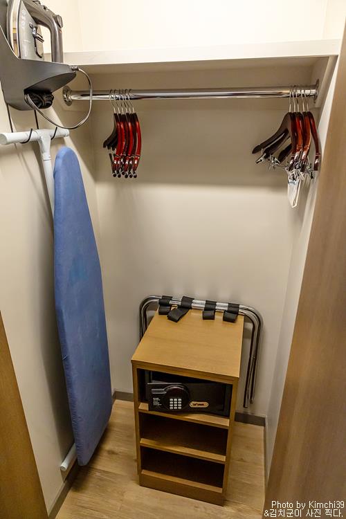 객실을 예약할 때 우리의 방타입은 호수 뷰(Lake View)였다. 창문에서 보이는 것은 보우 호수(Bow Lake)였는데, 사실 큰 의미가 있는 호수는 아닌 만큼.. 공항뷰나 호수뷰나 객실의 가격차이는 거의 없었다. 그래도 호수에서 오리들이 노니는 모습을 보는 것이 나쁘진 않았으니까. 그리고, 슬리퍼는 없었지만, 옷을 걸 수 있는 공간 자체는 상당히 넉넉했다.
