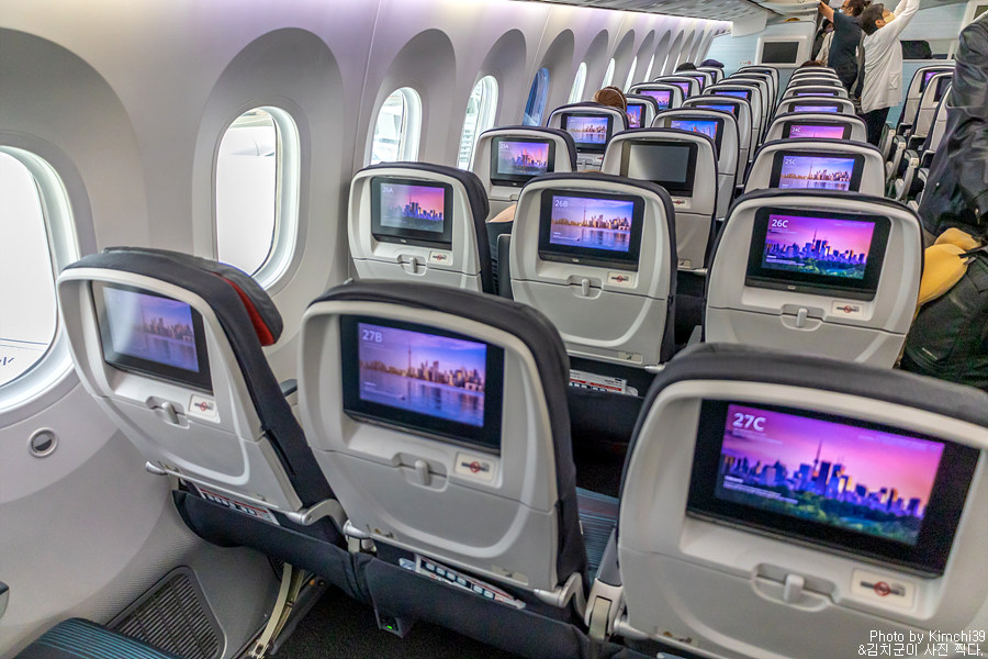 한국에서 직항으로 밴쿠버, 토론토, 몬트리올로 취항하는 에어캐나다의 항공편은 모두 B787-9 기종이며, 최신 비행기 답게 이코노미 좌석도 AVOD가 상당히 큰 편에 속한다. 또한, 비즈니스 클래스는 당연하게도 180도 풀플랫 스타일 좌석이며, 프리미엄 이코노미도 좌석간격이 38인치로 상당히 넓다. 구간에 따라서는 일반 이코노미 좌석과 프리미엄 이코노미 좌석의 가격차이가 20~30만원 이내일 때도 있는데, 이정도 가격차이라면 프리미엄 이코노미는 한 번 노려볼만한 좌석이라고 할 수 있다. 더군다나, 프리미엄 이코노미의 경우 마일리지도 이코노미보다 많이 적립되기 때문에 등급 유지를 위해 이용하는 사람에게도 유리하다.