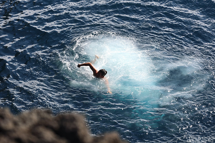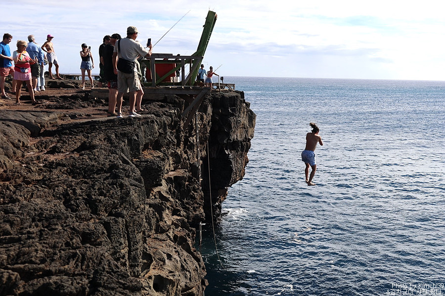물론, 용감하게 뛰어내리는 사람들이 없는 건 아니다. 올라올 수 있도록 사다리가 있기는 한데, 그냥 흔들리는 철제 사다리이기 때문에 올라오는 것도 어마어마한 체력을 소비할 듯 싶다. 개인적으로도 굳이 여기서 다이빙을 해야 하나 싶은데, 예전에 오아후의 와이메아비치에서는 뛰어내려 봤었다. ㅎㅎ