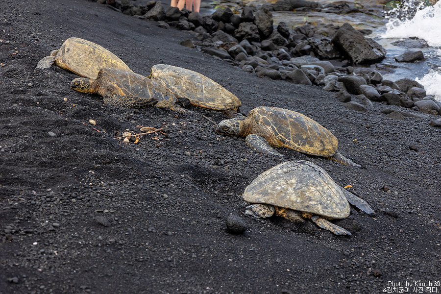 유유히 일광욕을 즐기고 있는 거북이들. 거북이는 항상 비슷한 장소에 올라와서 휴식을 취하는데, 가까이 갈 수 없도록 돌로 펜스가 쳐져있었다. 당연히 거북이에게 가까이 가거나 먹이를 주는 것도 불법이다. 이렇게 올라와서 잠을 자고 있는 경우와 다르게, 종종 스노클링을 하거나 물놀이를 할 때에는 거북이가 상당히 가까이 오는 경우가 있는데 그 경우에도 만지지 않도록 주의해야 한다.