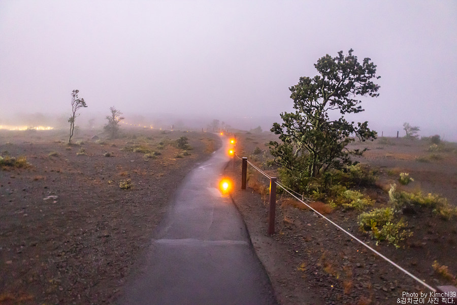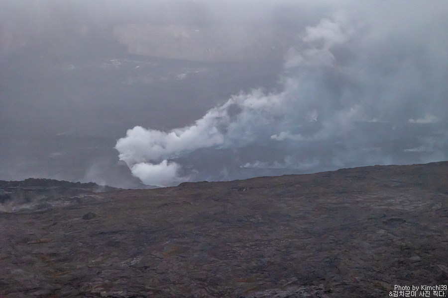 현재 재거뮤지엄쪽은 입장이 통제되고 있기 때문에 킬라우에아 전망대(Kilauea Overlook)으로 향했다. 낮에는 그냥 수증기가 올라오는 것처럼 보이지만, 해가지고나면 용암에 의해 붉게 물드는 색이 보이기 때문이다. 이때는 아직 마우나로아가 분출하기 전이라서 마우나로아의 용암 모습은 보지 못했다. 방향도 이쪽이 아니었고.