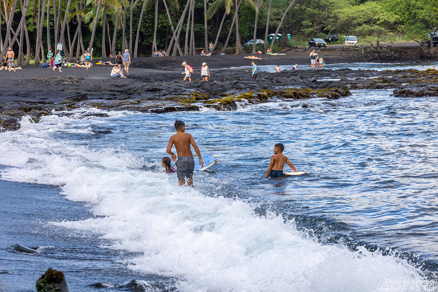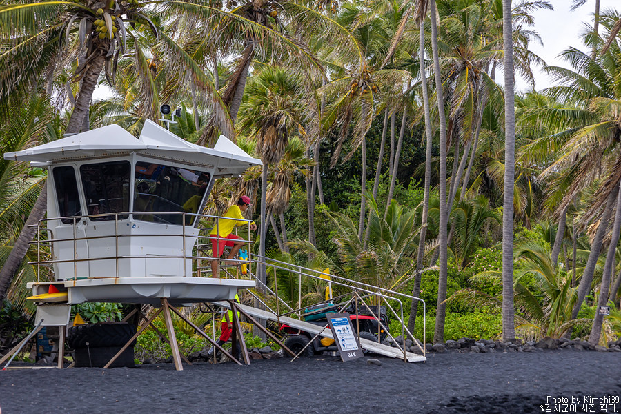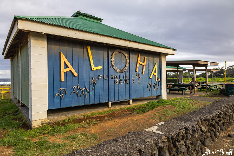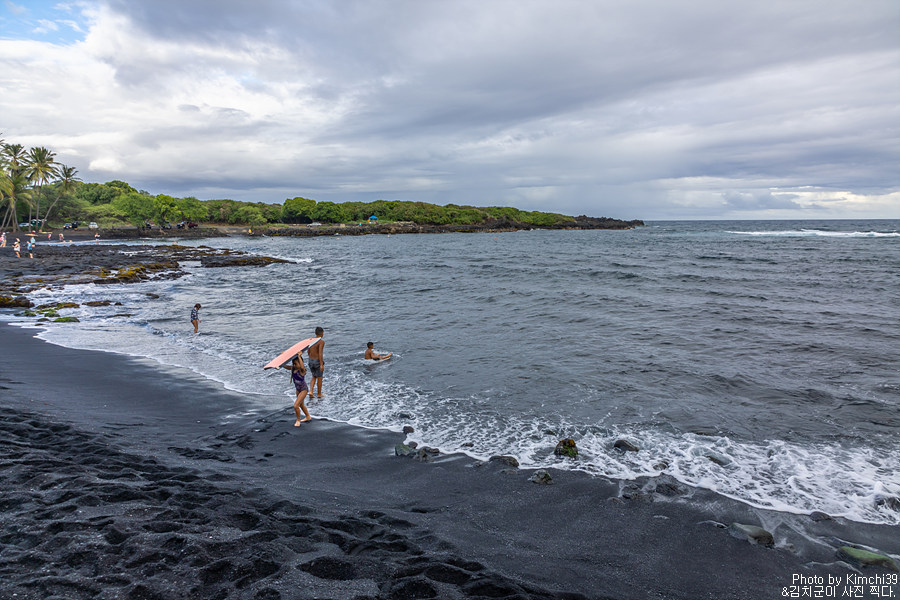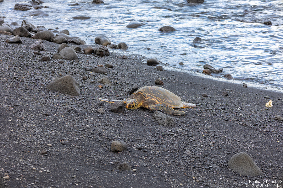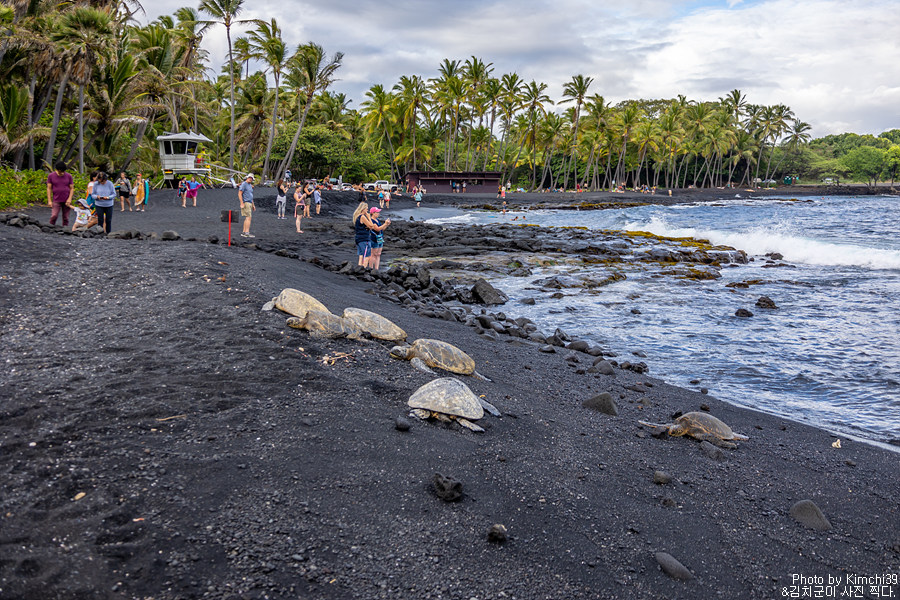 다음목적지는 푸날루우 블랙샌드비치파크(Punaluu Black Sand Beach Park). 검은 모래 해변과 거북이들이 많이 출몰하는 것으로 유명한 해변이다.