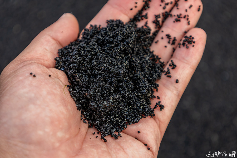 모래들도 바위와 구분이 되지 않을 정도로 모두 검은색이다. 이 검은 모래들은 굉장히 굵기 때문에 몸에도 많이 달라붇지 않아서 좋다.