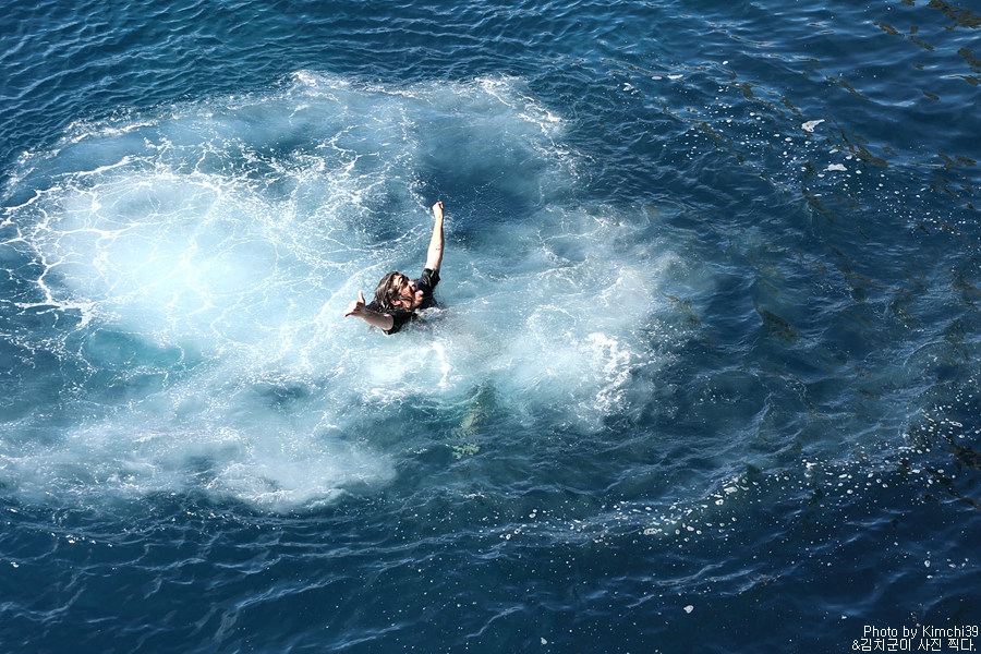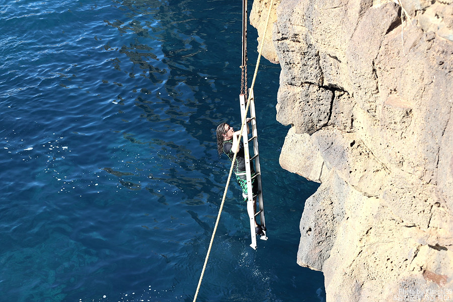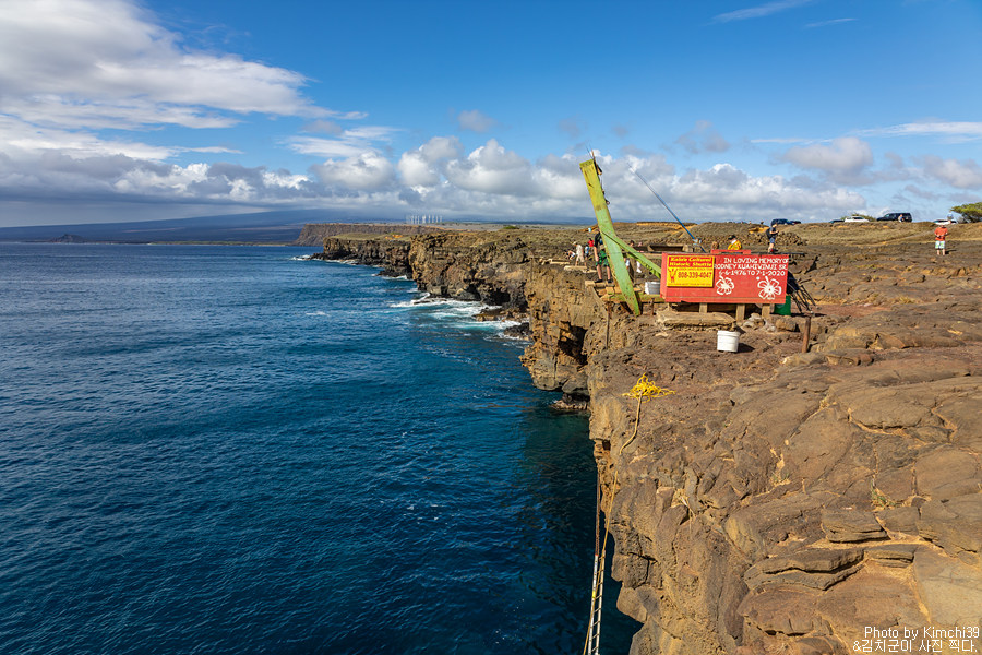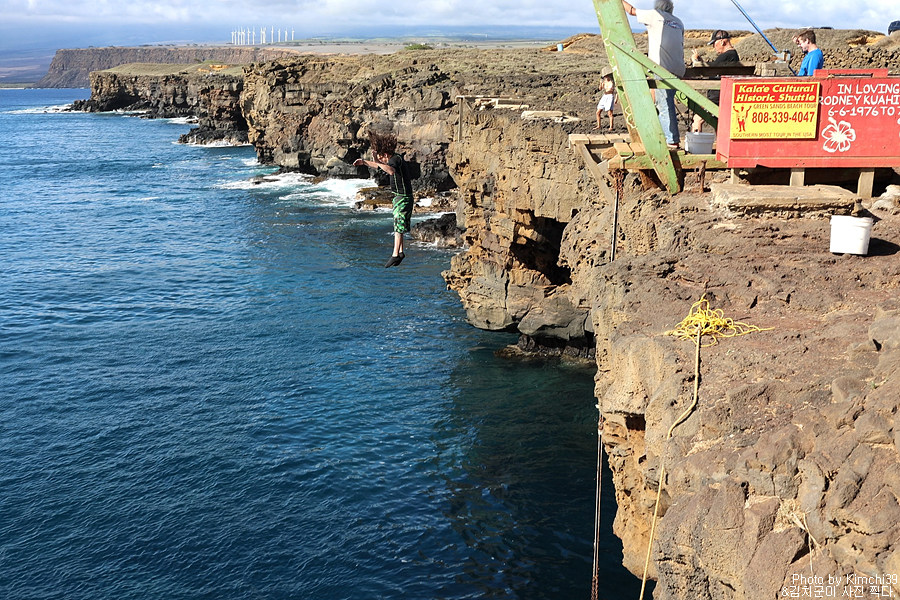 물론, 용감하게 뛰어내리는 사람들이 없는 건 아니다. 올라올 수 있도록 사다리가 있기는 한데, 그냥 흔들리는 철제 사다리이기 때문에 올라오는 것도 어마어마한 체력을 소비할 듯 싶다. 개인적으로도 굳이 여기서 다이빙을 해야 하나 싶은데, 예전에 오아후의 와이메아비치에서는 뛰어내려 봤었다. ㅎㅎ