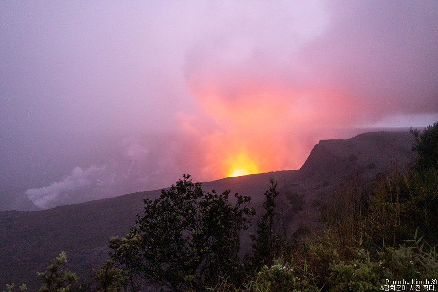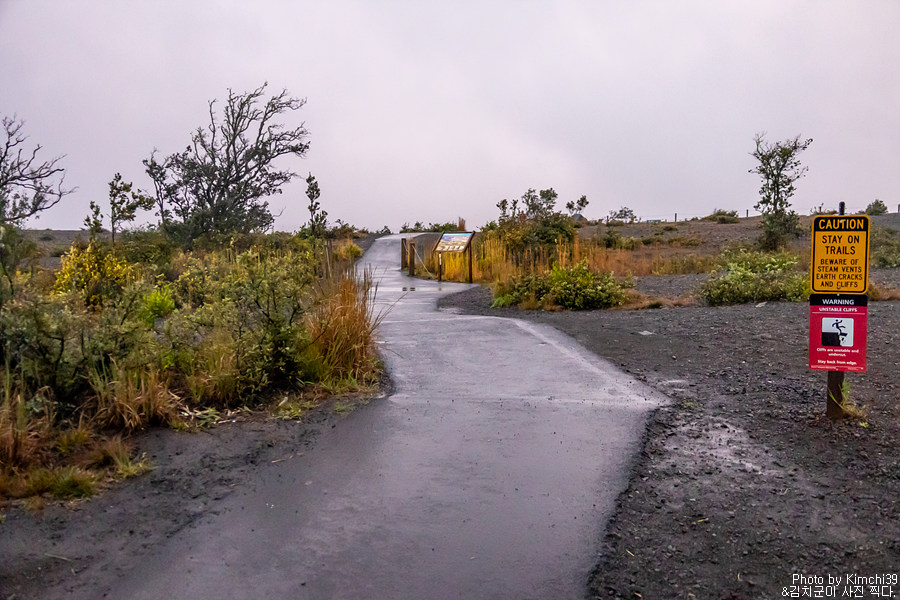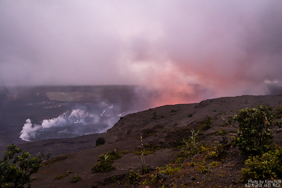 현재 재거뮤지엄쪽은 입장이 통제되고 있기 때문에 킬라우에아 전망대(Kilauea Overlook)으로 향했다. 낮에는 그냥 수증기가 올라오는 것처럼 보이지만, 해가지고나면 용암에 의해 붉게 물드는 색이 보이기 때문이다. 이때는 아직 마우나로아가 분출하기 전이라서 마우나로아의 용암 모습은 보지 못했다. 방향도 이쪽이 아니었고.