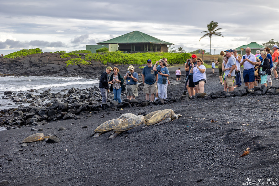 유유히 일광욕을 즐기고 있는 거북이들. 거북이는 항상 비슷한 장소에 올라와서 휴식을 취하는데, 가까이 갈 수 없도록 돌로 펜스가 쳐져있었다. 당연히 거북이에게 가까이 가거나 먹이를 주는 것도 불법이다. 이렇게 올라와서 잠을 자고 있는 경우와 다르게, 종종 스노클링을 하거나 물놀이를 할 때에는 거북이가 상당히 가까이 오는 경우가 있는데 그 경우에도 만지지 않도록 주의해야 한다.