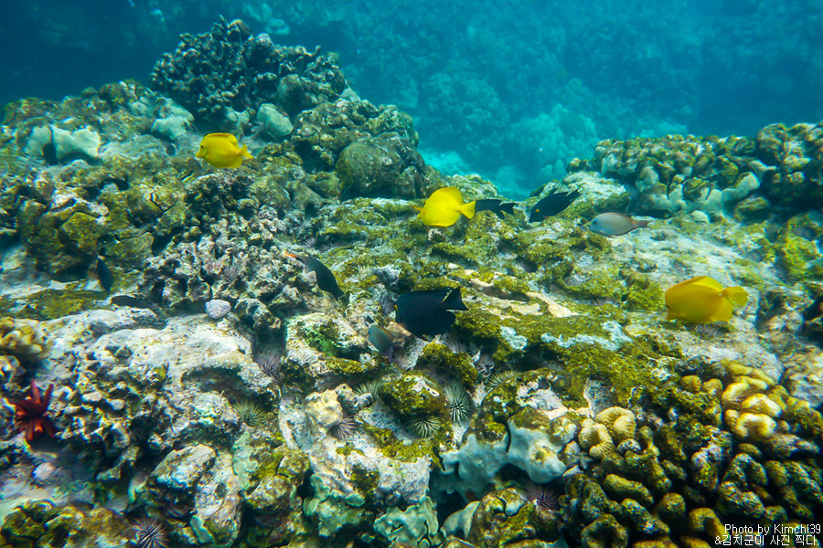 이 포인트에는 빅아일랜드의 다른 포인트들 보다도 옐로우탱(Yellow Tang)이 많은데, 얼마나 많으면 그냥 물 밖에서도 옐로우탱이 모여있는 것이 눈으로 보일 정도다.