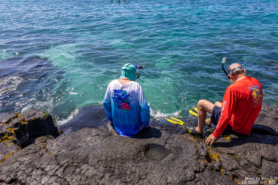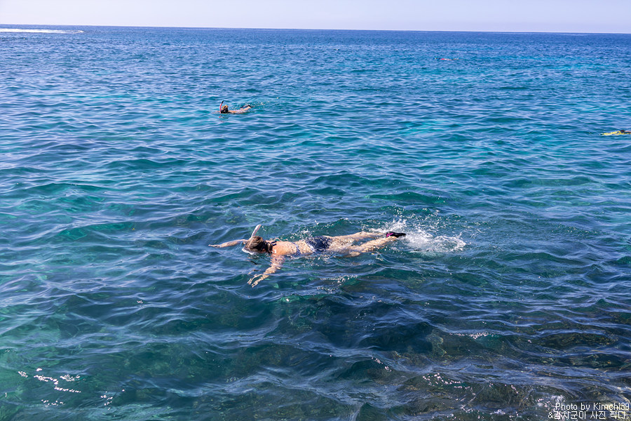 투 스텝스(Two Steps)라는 이름은 스노클링을 하러 들어가는 곳이 이렇게 2개의 계단처럼 된 바위이기 때문이다. 이곳을 통해 입수하면 안전하게 바위와 바다를 왕복할 수 있다. 이날은 꽤나 물이 잔잔한 날이었기 때문에 상당히 많은 스노클러들이 스노클링을 즐기고 있었다.