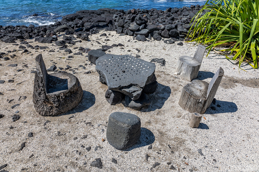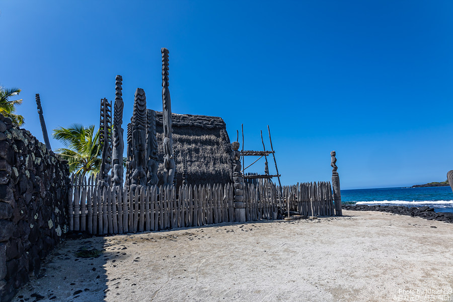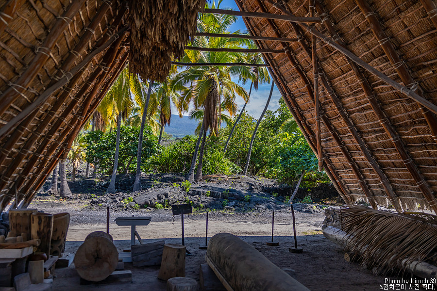 위 건물은 할레 오 케아웨(Hale o Keawe)로, 과거 고위 추장이나 그에 준하는 사람들이 묻혔던 릉에 가까운 장소이다. 물론, 현재 그 유골들이 남아있거나 하지 않고, 건물 역시 복원된 것이기는 하지만 신성한 장소에 남아있는 곳임에는 변함이 없다.