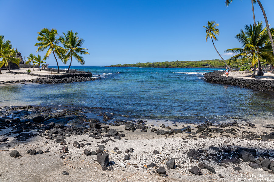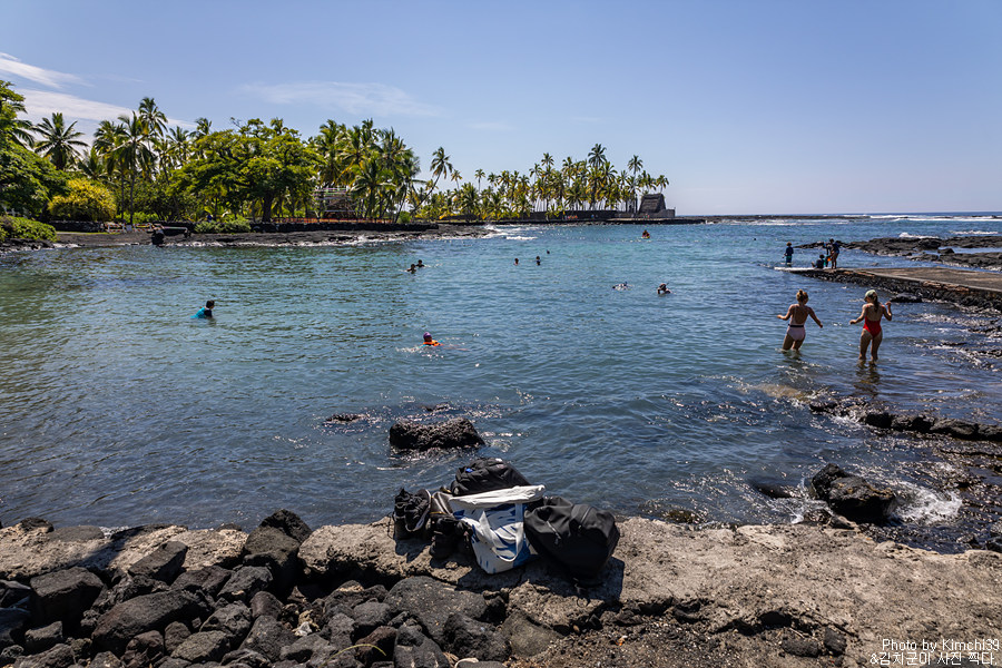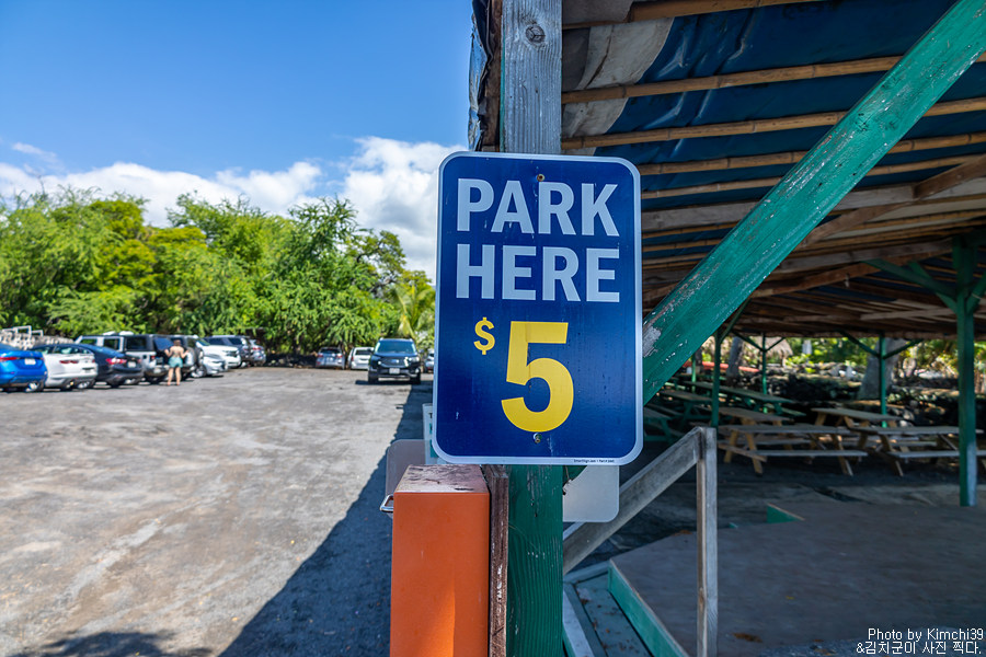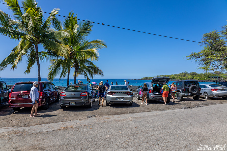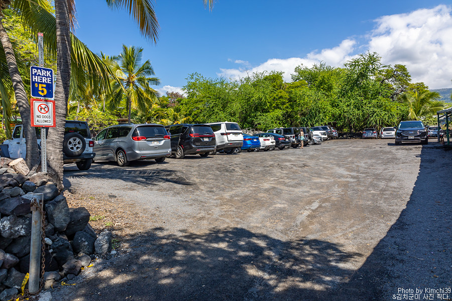 다음에는 이동해서 푸우호누아 오 호나우나우 국립역사공원을 잠시 보러 다녀왔다. 이번이 세번째 방문. 넓은 주차공간이 있기 때문에 차량을 주차하는데는 아무런 문제가 없다. 입장료를 내고 들어왔다고는 하지만, 여기에 주차를 하고 스노클링을 하러 가는 건 금지하고 있다. 미국 국립공원 패스가 있다면 입장료가 면제되나, 그렇지 않다면 별도의 입장료(차량 당 $20)을 내야 한다.