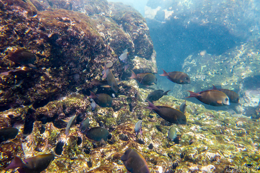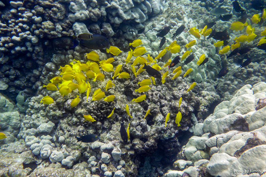 이 포인트에는 빅아일랜드의 다른 포인트들 보다도 옐로우탱(Yellow Tang)이 많은데, 얼마나 많으면 그냥 물 밖에서도 옐로우탱이 모여있는 것이 눈으로 보일 정도다.