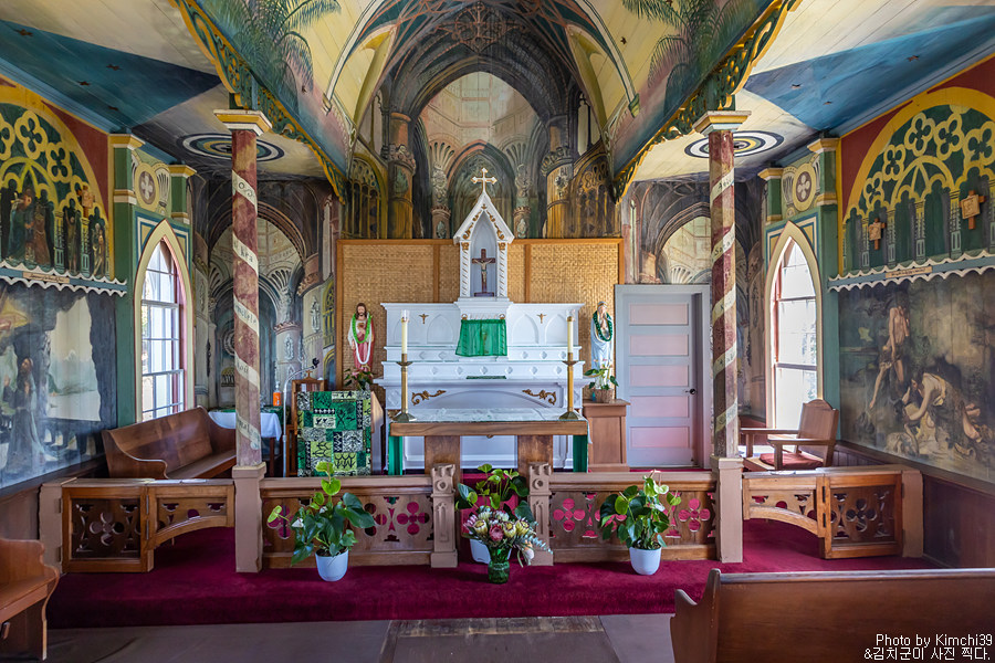 이 페인티드 처치의 정식 이름은 세인트 베네딕트 처치(St Benedict Church)로, 원래는 호나우나우 해안쪽에 있었지만 1899년에 현재의 위치로 이사했다. 이 교회를 세운 존 신부(Father John Velghe)는 당시에 하와이 지역에 글을 아는 사람이 없다는 것을 고려해, 성경의 인상적인 장면들로 그림을 그려 현재의 페인티드 처치를 완성했다.