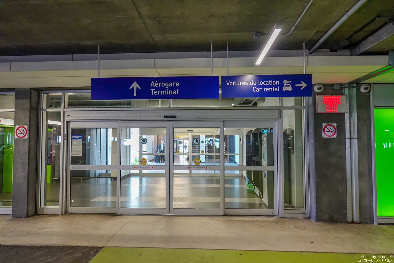 퀘벡시티 공항에 도착하면, 표지판을 따라 픽업하는 곳으로 이동하면 된다. 나는 국제선으로 퀘벡시티에 도착했기 때문에 도착 터미널이 다르긴 했지만, 국내선 터미널로 이동하는 것은 도보로 얼마 되지 않기 때문에 걸어서 이동하면 된다. 대부분 국내선 도착인 만큼, 국내선에서는 바로 렌터카 픽업을 하는 곳으로 연결되는 안내판이 있다.