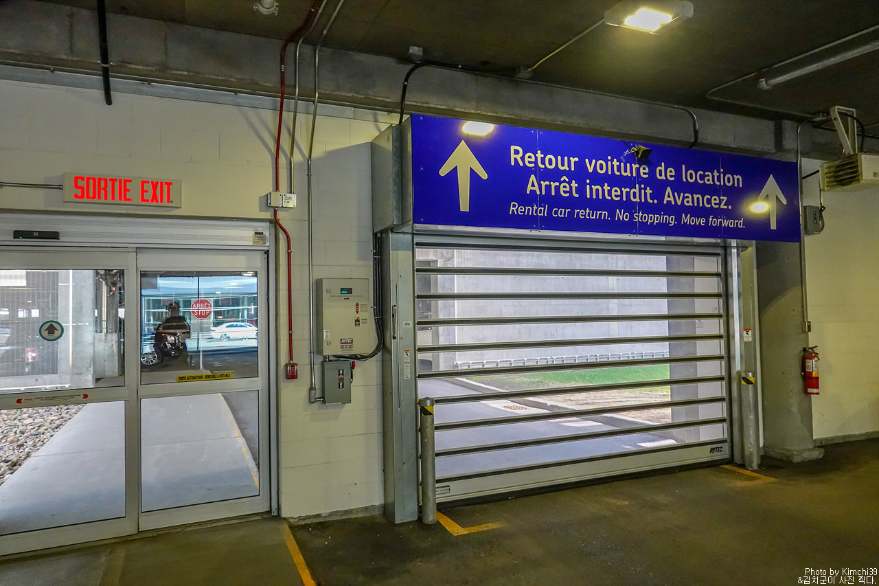 퀘벡시티 공항에 도착하면, 표지판을 따라 픽업하는 곳으로 이동하면 된다. 나는 국제선으로 퀘벡시티에 도착했기 때문에 도착 터미널이 다르긴 했지만, 국내선 터미널로 이동하는 것은 도보로 얼마 되지 않기 때문에 걸어서 이동하면 된다. 대부분 국내선 도착인 만큼, 국내선에서는 바로 렌터카 픽업을 하는 곳으로 연결되는 안내판이 있다.