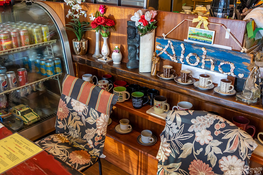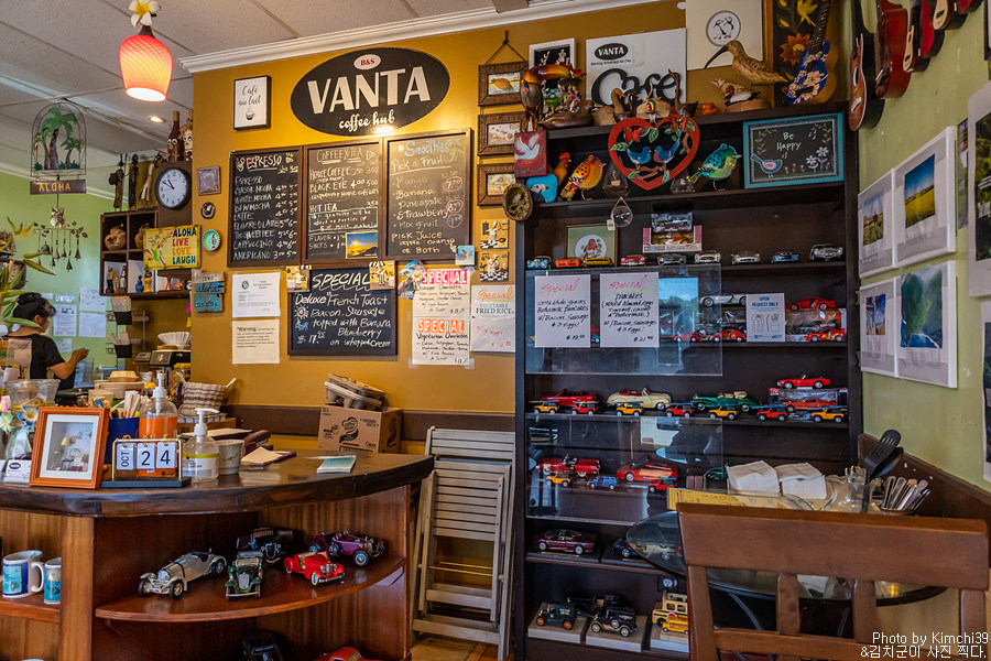 나름 하와이 스러운 물건들로 가득 차 있는 반타 카페. 상대적으로 좁은 공간이기는 하지만, 나름 아기자기하게 곳곳에 여러 물건들을 전시해 놓았다. 팬시한 느낌의 카페는 아니지만, 그래도 하와이스러운 느낌이 물씬 풍기는 카페다.