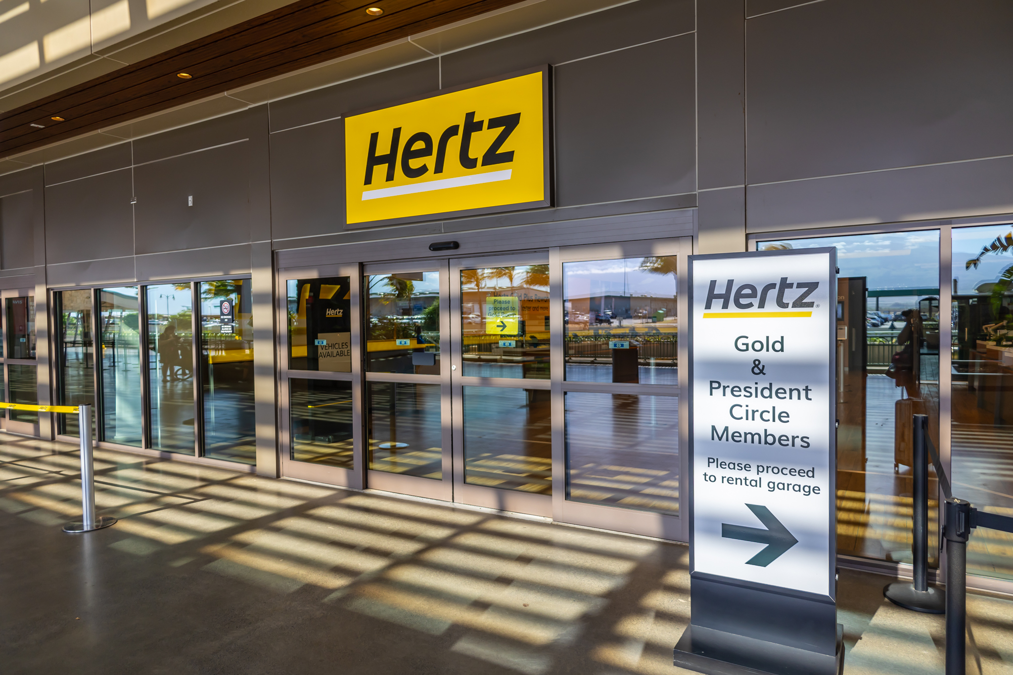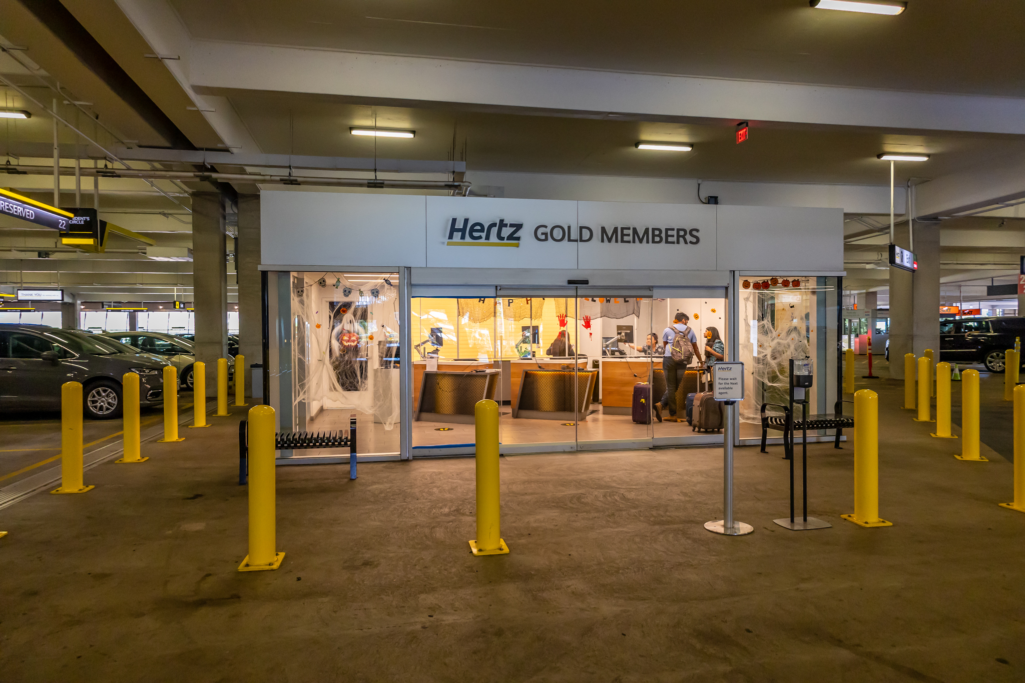 마우이 공항의 허츠 렌터카 골드회원 전용 카운터.