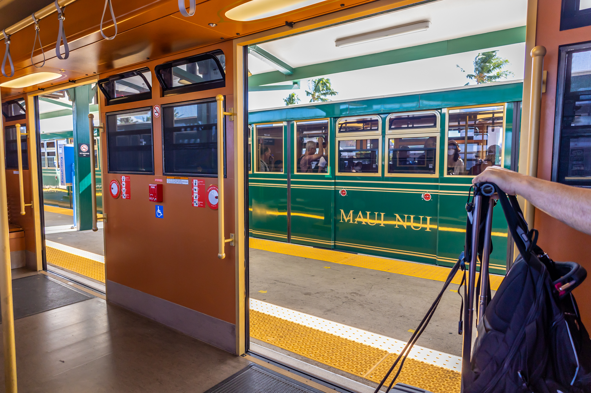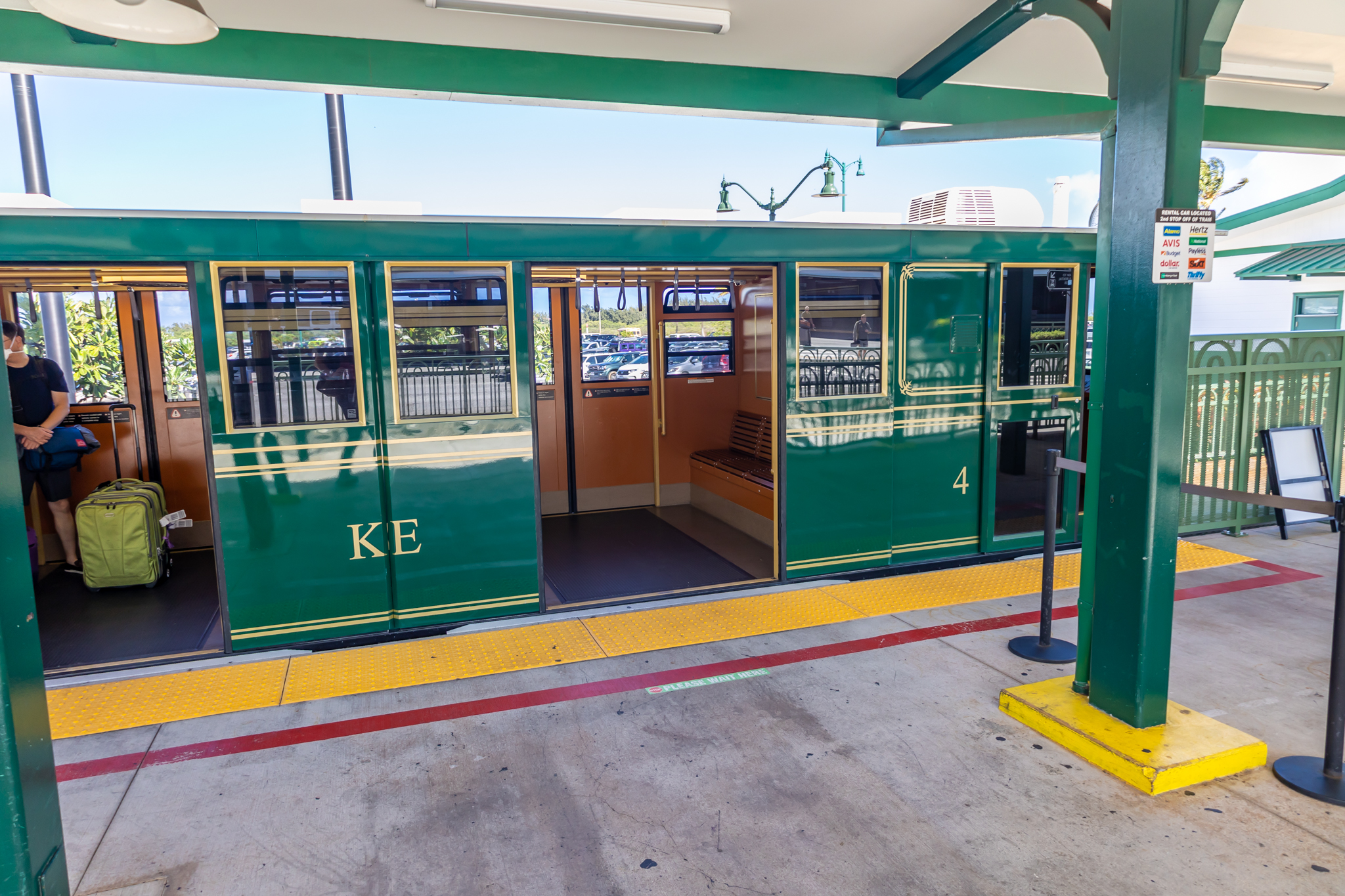 마우이 공항의 짐 찾는 곳에서 나오면, 건너편에 트램을 타는 정류장이 바로 보이기 때문에 혼동하는 것이 더 어렵다. 횡단보도를 타고 건너면 녹색지붕의 트램 정류장을 볼 수 있다. 비행기가 많이 도착하는 오전11시~오후3시 사이에는 트램정류장이 사람들로 가득차지만, 그 외 시간대에는 상대적으로 한산하다. 내 경우에는 오전 9시도착 풍경.
