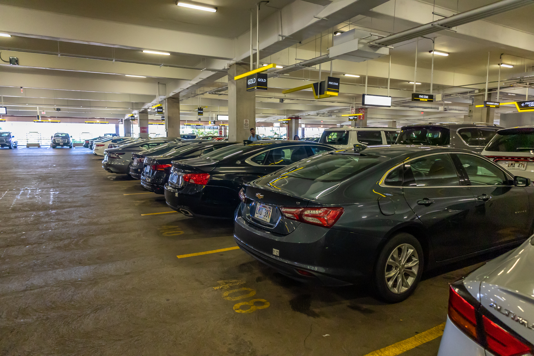 그리고, 일반적으로 가입하면 받게되는 골드회원 등급의 섹션. 골드회원 섹션에는 거의 대부분의 차량들이 미드사이즈~풀사이즈 등급 사이의 차량들이었고, 아주 드물게 미드사이즈SUV들이 있었다. 여기서 원하는 차량을 선택한 뒤, 차량의 조작방법을 확인한 다음에 출구로 이동하면 된다. 차량 키는 차 안에 있으므로, 차량의 브랜드도 좋지만 주행거리가 짧은 차량으로 고르는 것을 권장한다. 주행거리가 짧은 차량일수록 이용 중 문제가 발생할 가능성이 적다.