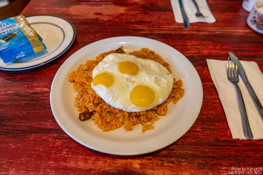 원래는 나 역시 그런 메뉴들을 먹으러 다시 온 것이었는데, 메뉴판에서 김치볶음밥을 보고... 김치볶음밥을 시키고 말았다. 한국의 꾸덕한 김치볶음밥이라기보다는 버터가 좀 많이 들어간 현지인들의 입맛에 더 가까운 김치볶음밥이긴 했지만, 그래도 최근에 한식을 거의 못먹어서 생긴 느끼함은 잡을 수 있었다. 한국사람이라고 김도 주셨다. ㅎㅎ