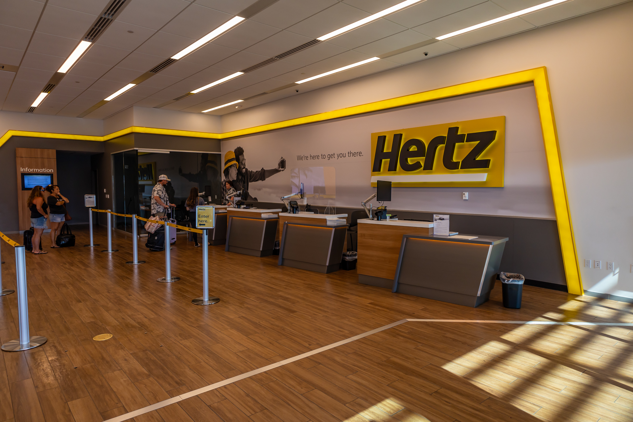 마우이 공항의 허츠 렌터카 골드회원 전용 카운터.