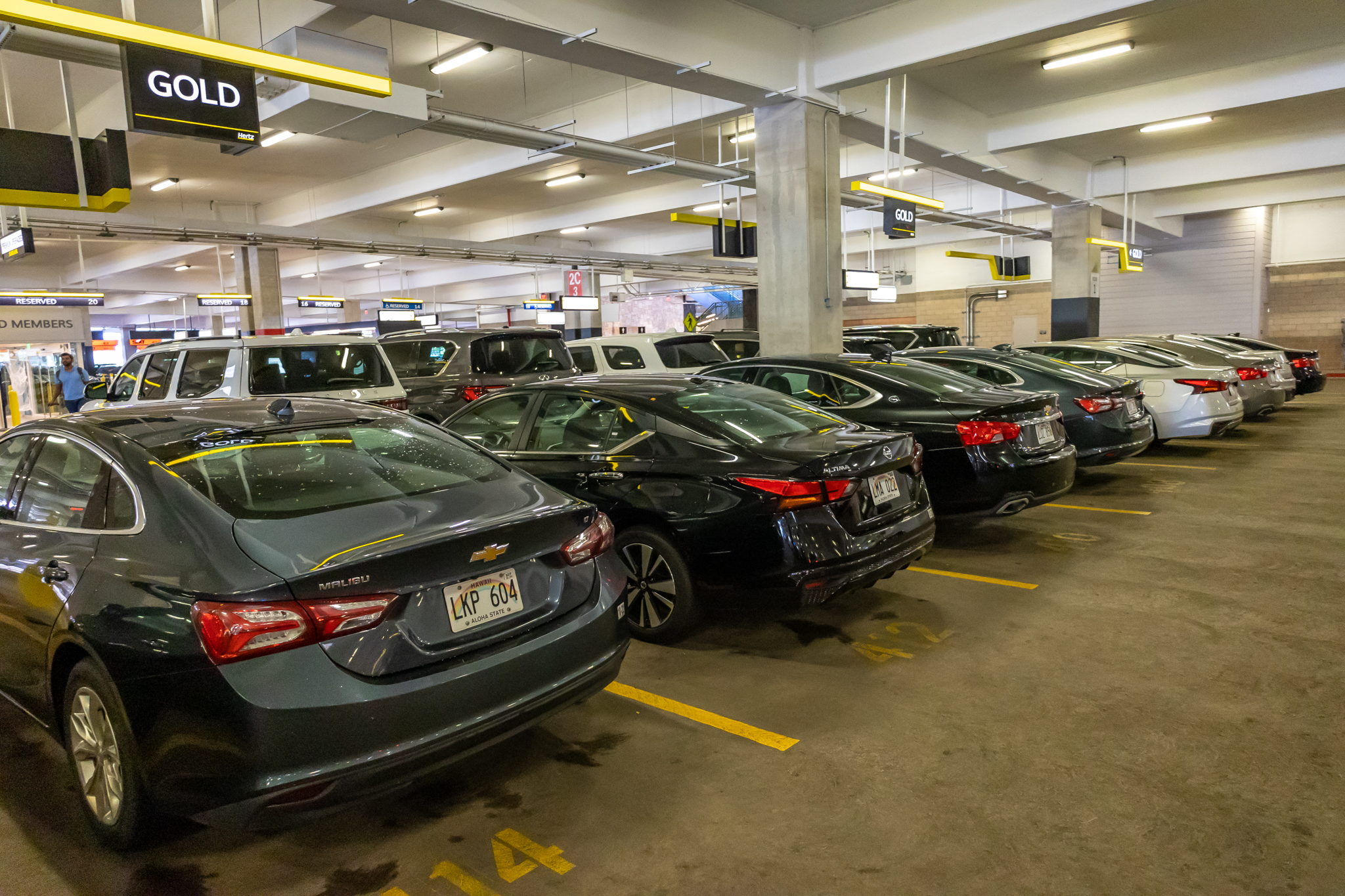 그리고, 일반적으로 가입하면 받게되는 골드회원 등급의 섹션. 골드회원 섹션에는 거의 대부분의 차량들이 미드사이즈~풀사이즈 등급 사이의 차량들이었고, 아주 드물게 미드사이즈SUV들이 있었다. 여기서 원하는 차량을 선택한 뒤, 차량의 조작방법을 확인한 다음에 출구로 이동하면 된다. 차량 키는 차 안에 있으므로, 차량의 브랜드도 좋지만 주행거리가 짧은 차량으로 고르는 것을 권장한다. 주행거리가 짧은 차량일수록 이용 중 문제가 발생할 가능성이 적다.