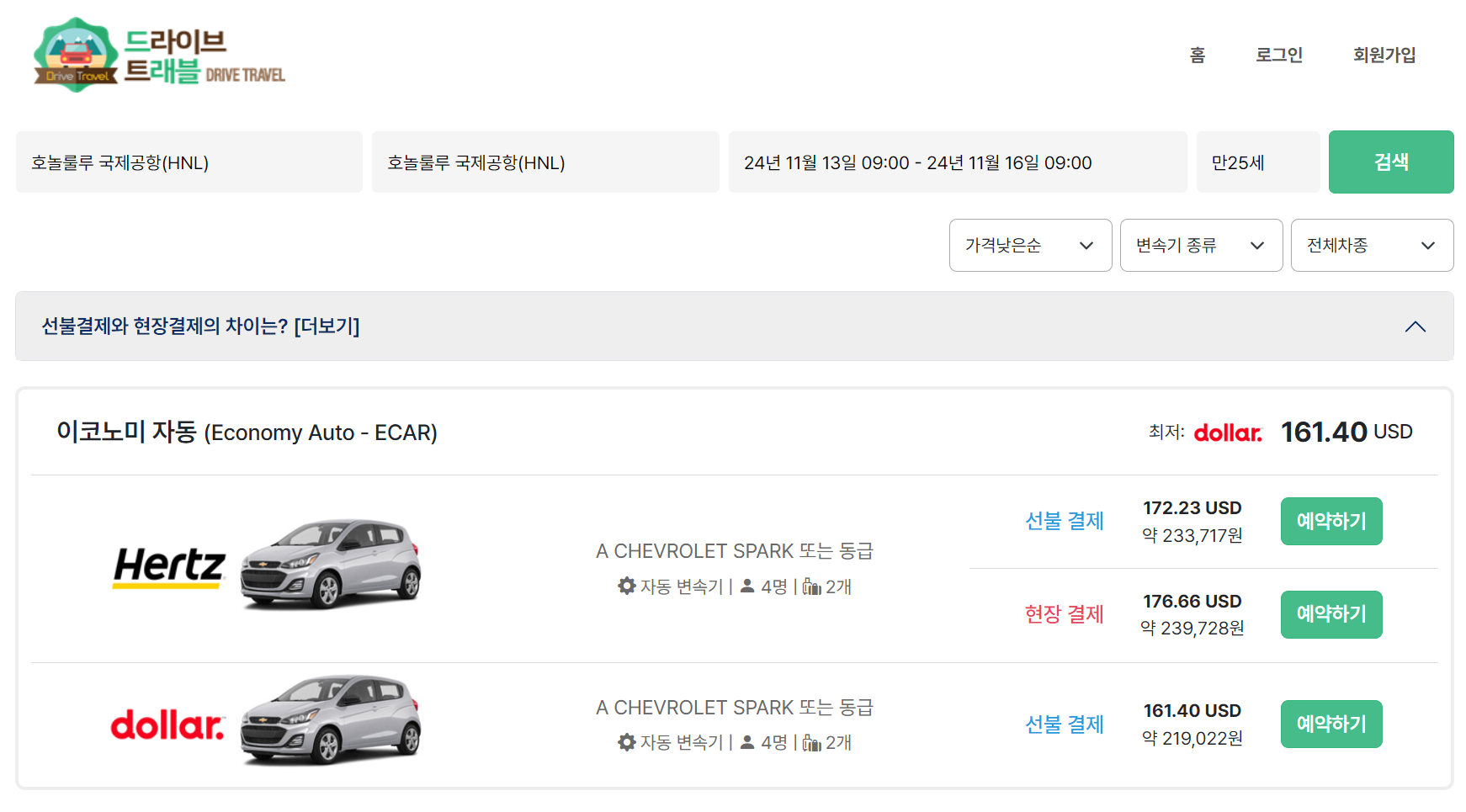 드라이브트래블 하와이 렌터카 예약 [바로가기]