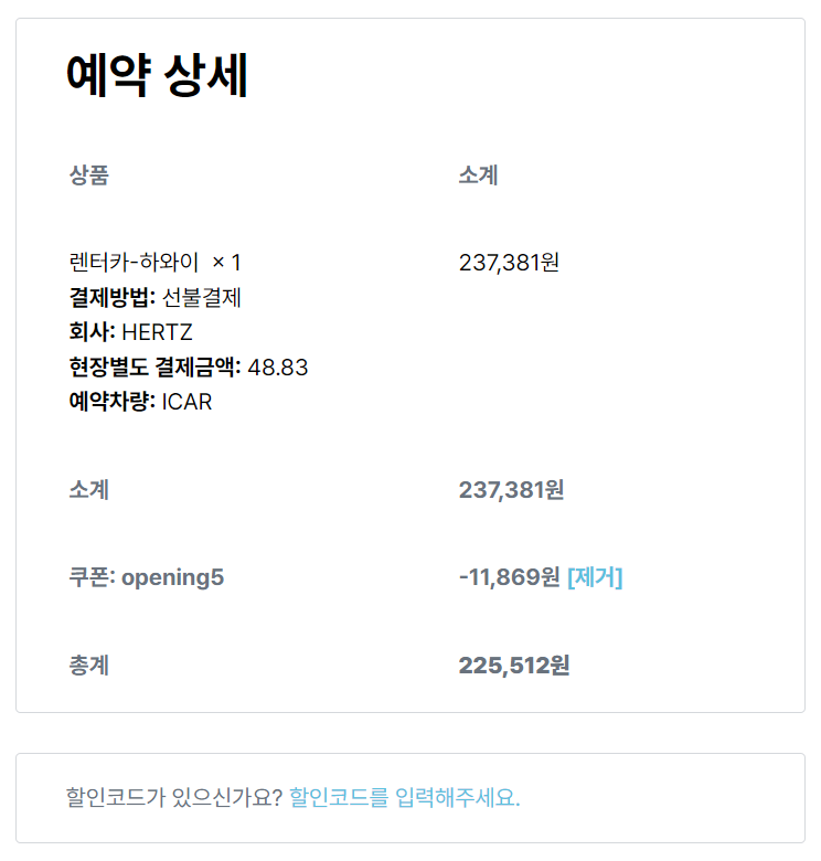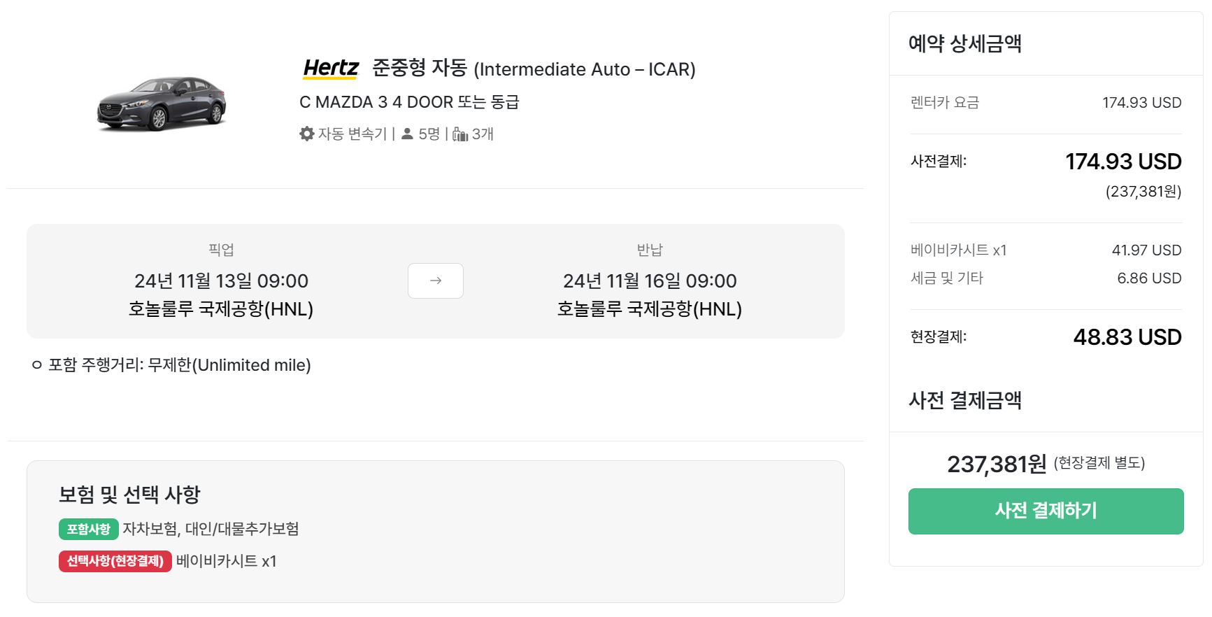 하와이 렌 트카 예약 - 허츠 및 달러 렌터카 5% 추가할인