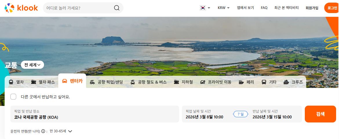 - 클룩 렌트카 예약 페이지[바로가기]: https://klook.com/ko/car-rentals