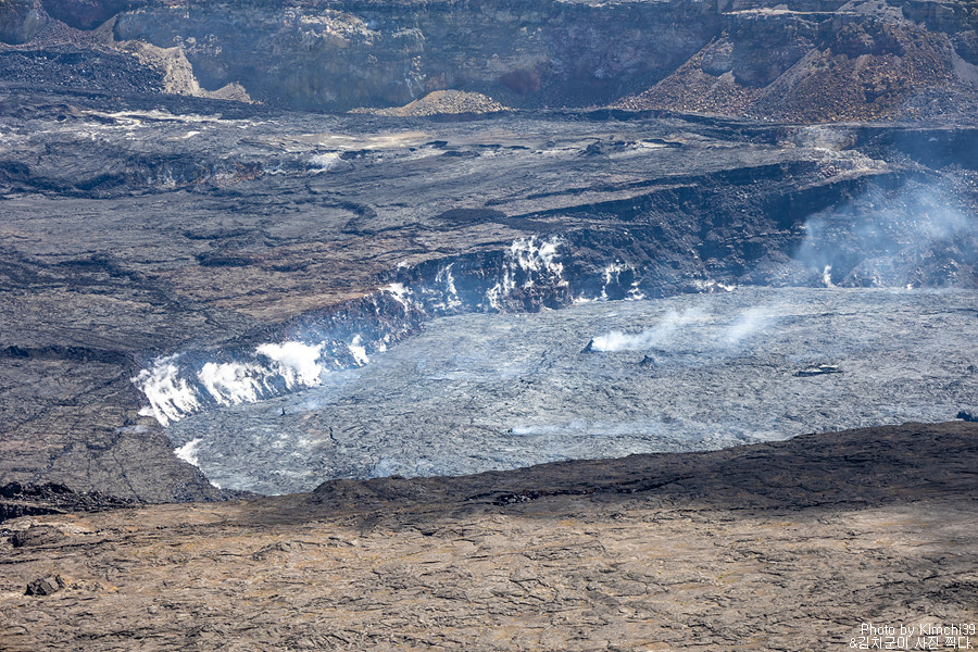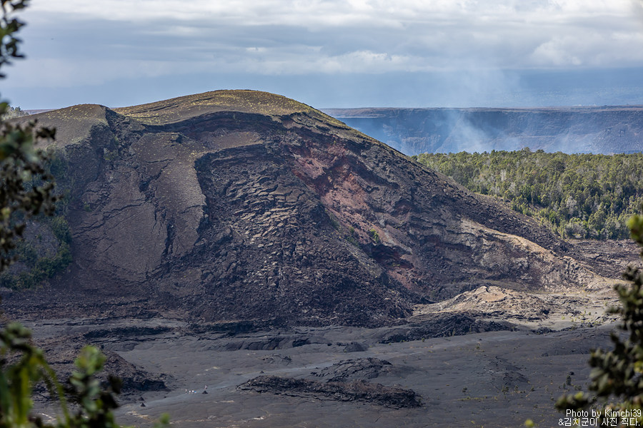 화산 국립공원에서의 마지막 목적지는 킬레우에아 전망대(Kilauea Lookout)이었다. 어제 붉게 물든 풍경을 보기 위해서 왔던 전망대이기도 한데, 밤에 보는 모습과 낮에 보는 모습은 전혀 달랐다. 분화구에서는 수증기가 꾸준히 올라오고 있어서 이곳이 화산이구나 하는 느낌을 그대로 받을 수 있었다. 화산활동에 따라 보이는 것도 다른데, 화산이 활발할 때에는 수증기가 훨씬 큰 규모로 올라왔었다.