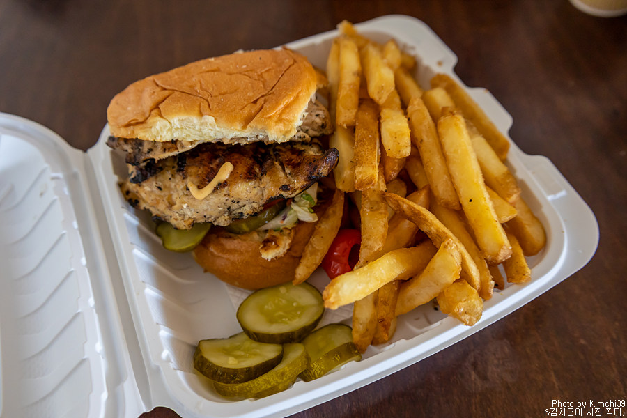 대부분의 메뉴들은 테이크아웃(투고)이 가능했는데, 치킨 샌드위치를 시켰다. 사실 샌드위치가 운전하면서 손에 들고 먹기에 딱 좋은 모양인 경우가 많아서였는데, 이곳의 치킨 샌드위치는 생각보다 많이 컸다. 그래서 운전을 하면서 먹을 수 없어서 주차를 해놓고 다 먹은 후에야 이동할 수 있었다. 이럴줄 알았으면 그냥 레스토랑에 앉아서 먹는게 나았을거라는 후회도 했지만, 이미 늦어버린 건 어쩔 수 없는 일.