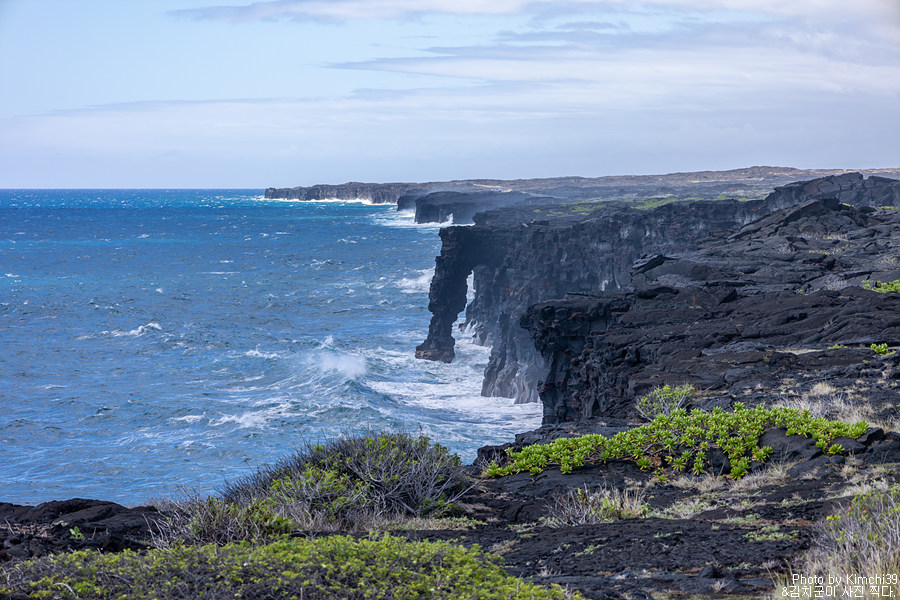 그렇게 체인 오브 크레이터스 로드를 따라 계속 달려 도로의 끝에 도달했다. 2018년에 욤암이 흐른 뒤로 도로는 끊기고, 이제는 정말 말 그대로 도로의 끝이 되었다. 주차공간은 많지 않지만, 도로변에 차를 세우고 걸어갈 수 있었다. 여기의 대표적인 볼거리는 홀레이 시 아치(Holei Sea Arch).