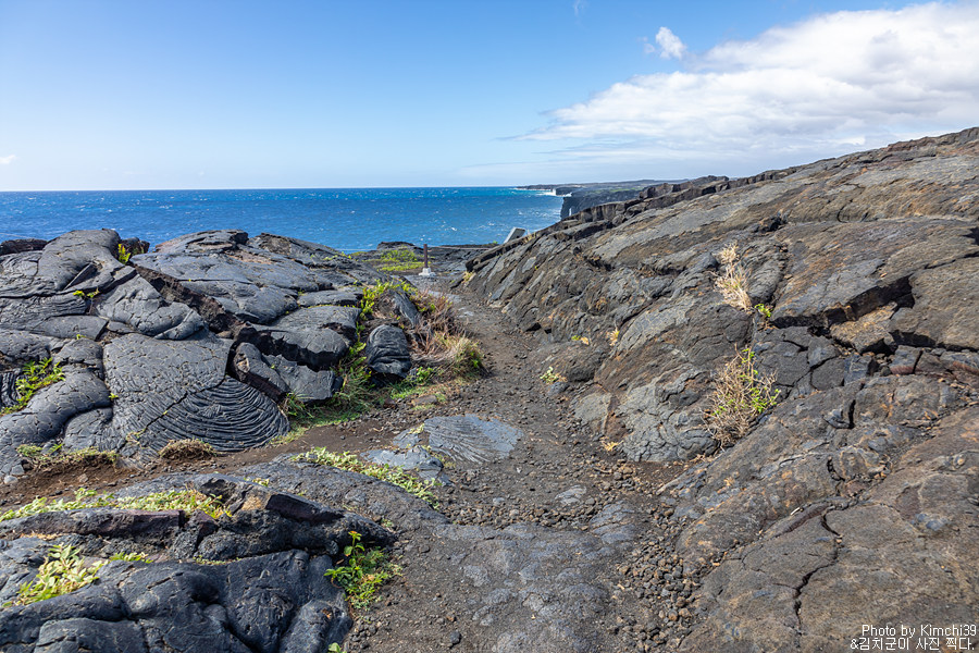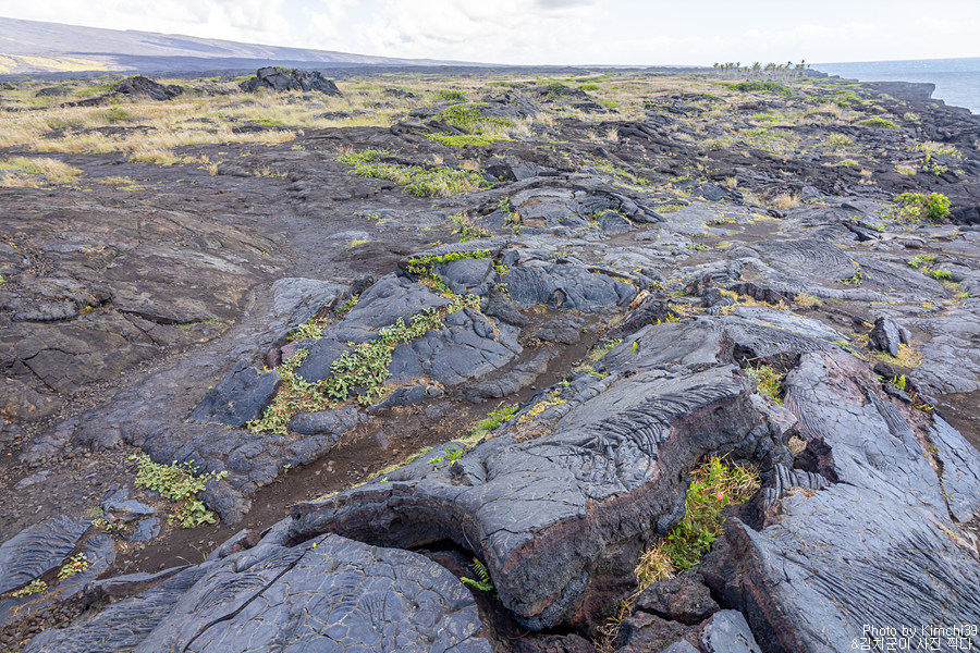 좋지 않았던 날씨는, 화산국립공원의 바다와 용암이 흐른지역을 내려다볼 수 있는 전망대인 케알라코모(Kealakomo)에 도착할때 쯤 갑자기 맑아지기 시작했다. 여기서 이정도로 맑다면 해안쪽으로 갔을 때에는 더 맑은 하늘을 기대할 수 있다는 의미이기도 했다. 하늘에 구름이 많기는 했지만, 머리 위로 내리쬐는 햇볕이 그렇게 반가울 수 없었다.