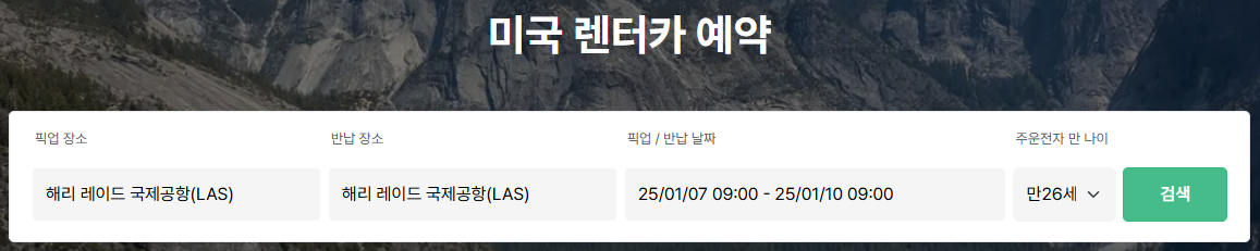첫번째 예시는, 라스베가스 국제공항에서 25년 1월 7일부터 10일까지, 3박 4일간의 요금을 조회한 것이다.