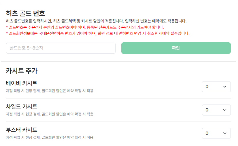 허츠 골드번호는 예약 과정에서 추가할 수 있다. 허츠 골드번호를 입력하면 두번째 임차부터 대기 없이 차량을 빨리 받을 수 있으며, 후불예약에 한해 배우자 무료 운전도 가능하다. 다만, 골드회원에 꼭 주 운전자의 '운전면허증 번호'가 들어가 있어야 하며, 국제운전면허증 번호가 들어가있으면 안된다. 또한, 신용카드 역시 주 운전자의 신용카드(체크카드는 안됨, 트래블월렛 등 포함)가 등록되어 있어야 하며 인수할 때 그 신용카드를 가져가야 한다.