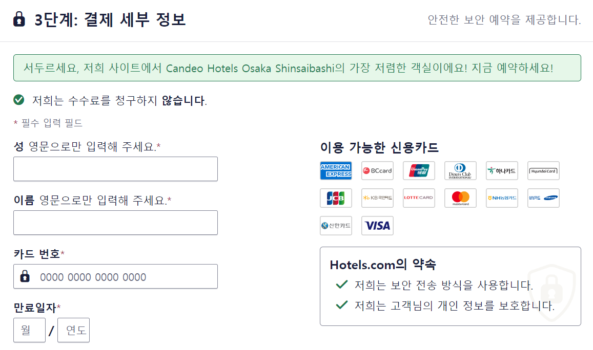 이제는 국제 브랜드 뿐만 아니라, 신한카드, 하나카드, 국민카드 등 국내 신용카드들도 사용이 가능하기 때문에 예전처럼 DCC로 인한 환율 손해를 보는 일도 없어져서 예약을 하는 것도 훨씬 더 편해졌다.