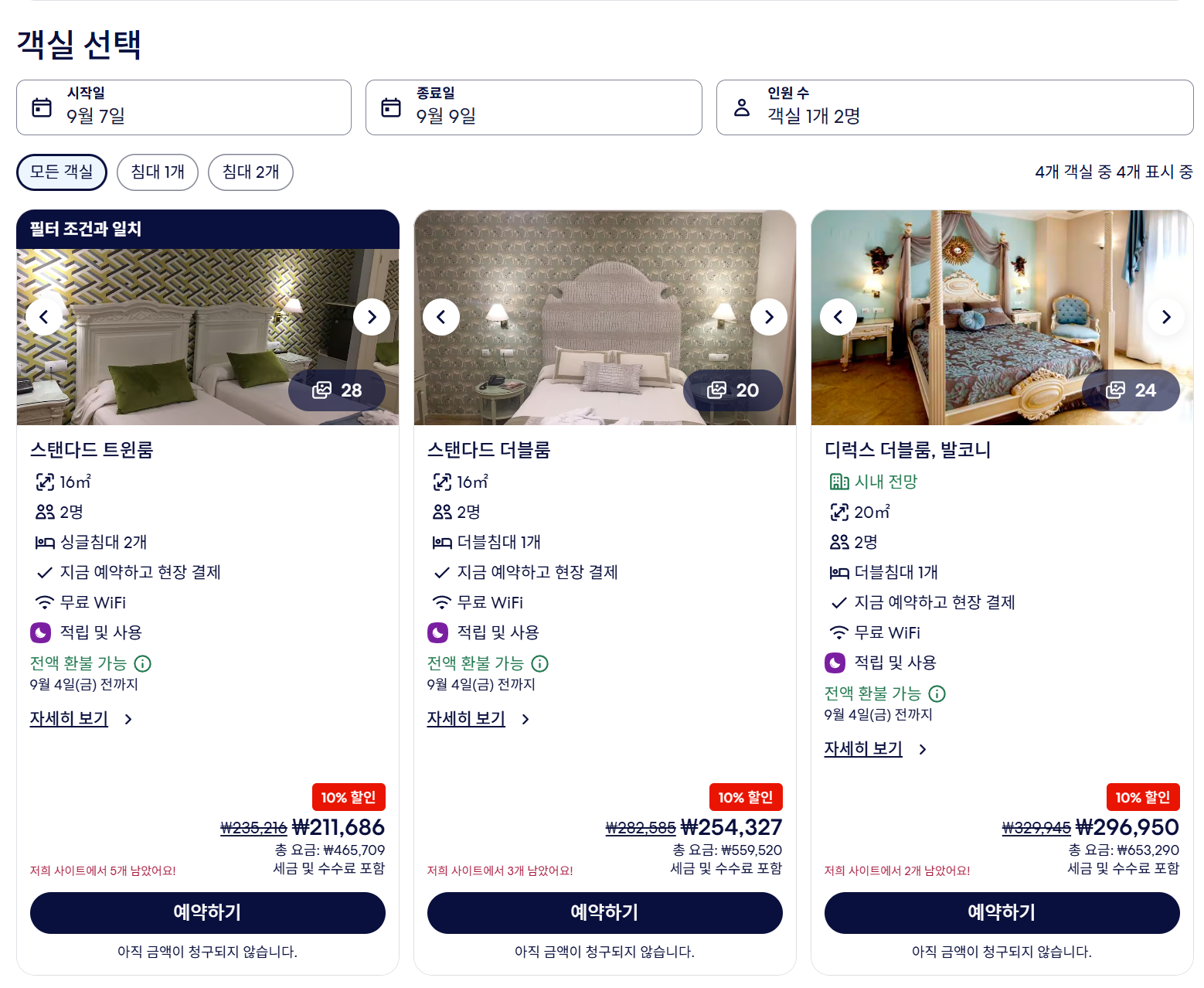 위 예시는 직접 투숙했던 날짜는 아니었지만, 스페인 세비야에서 2박을 하는 일정으로 검색해 보았다.